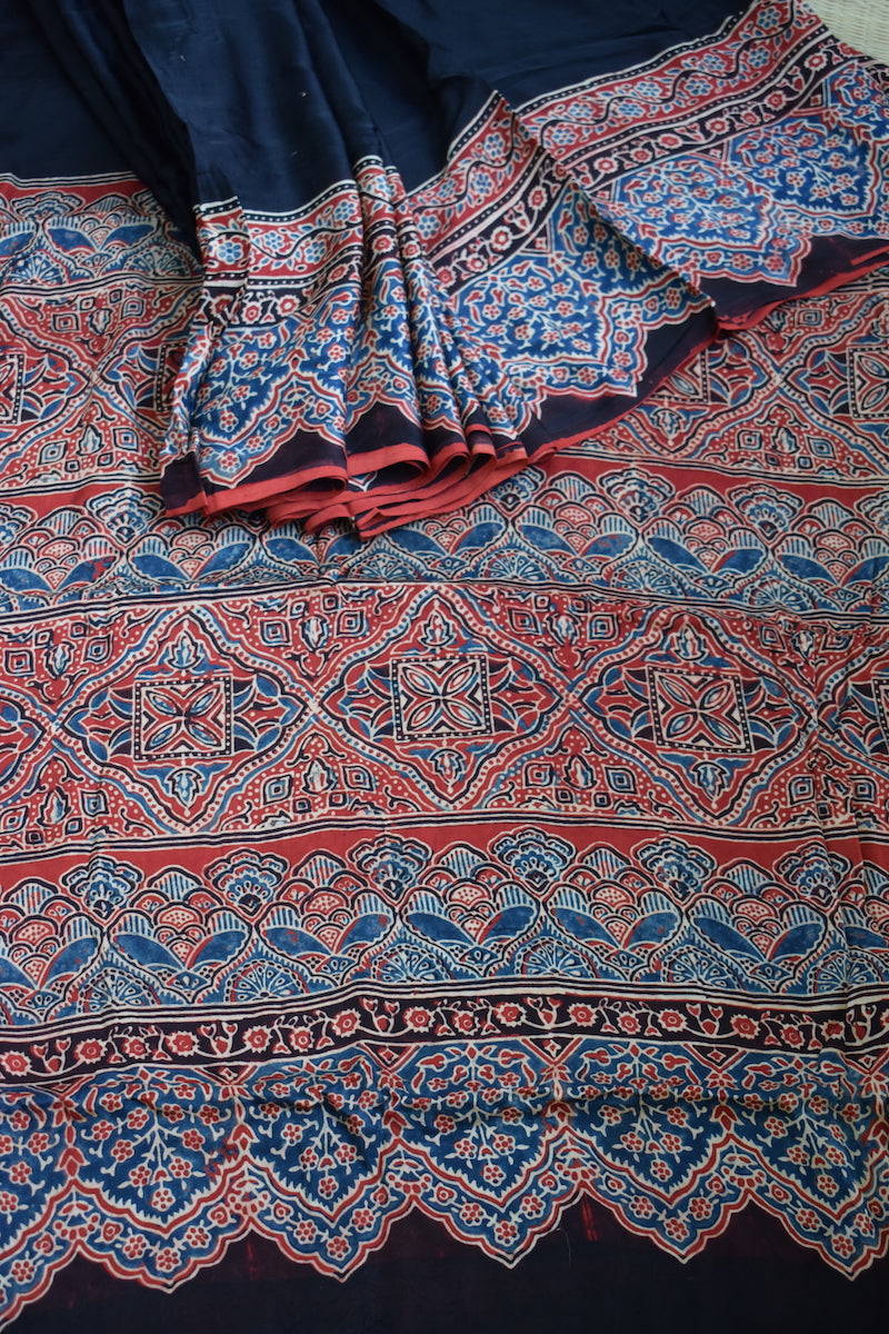 Soft as a feather, this stunning block printed, Ajrakh saree on a smooth and silky modal silk for that perfect drape on any occasion! Fashionista like you deserves this stunning red.