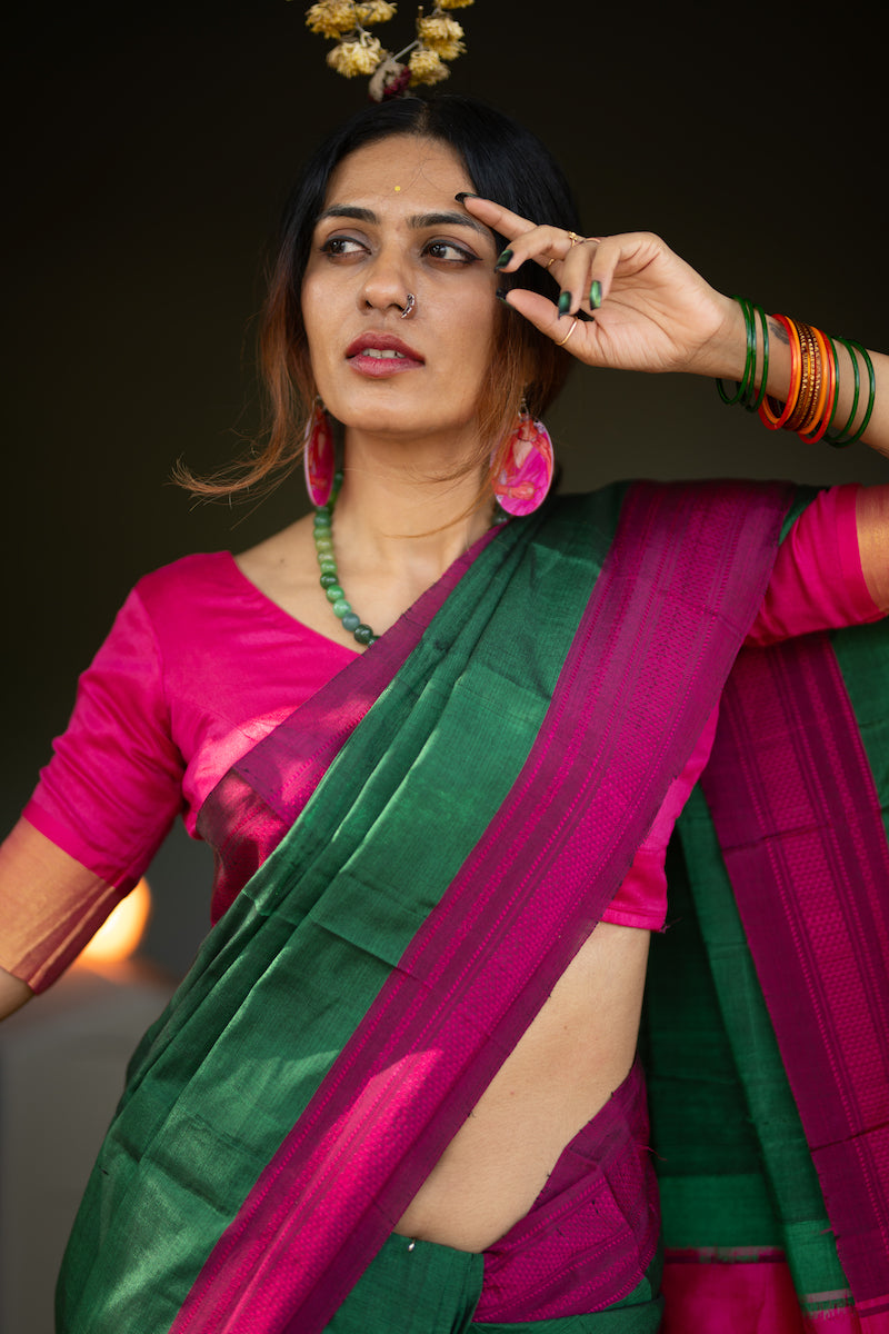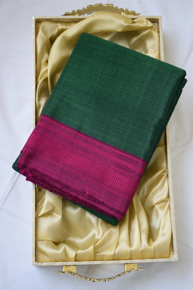 Green Ilkal Viscose Saree with Chikki Paras Border