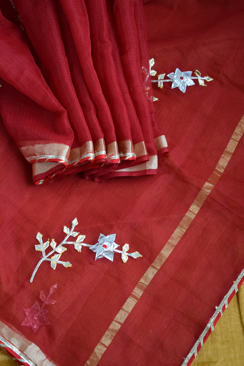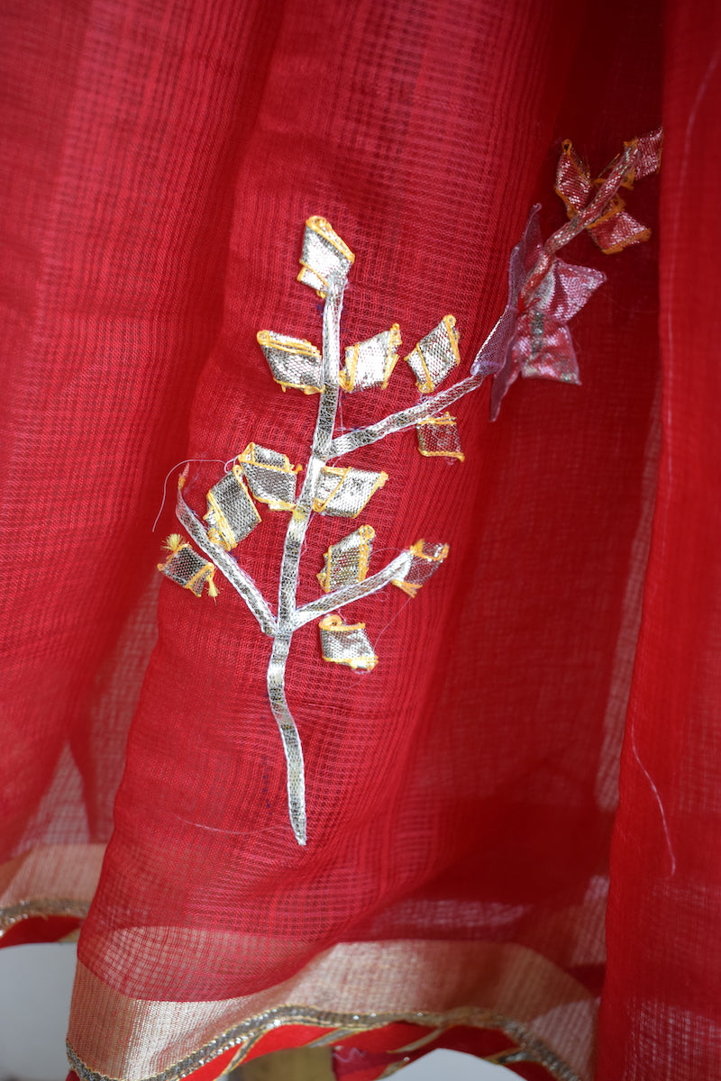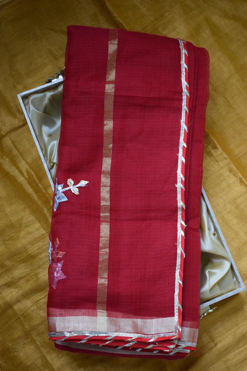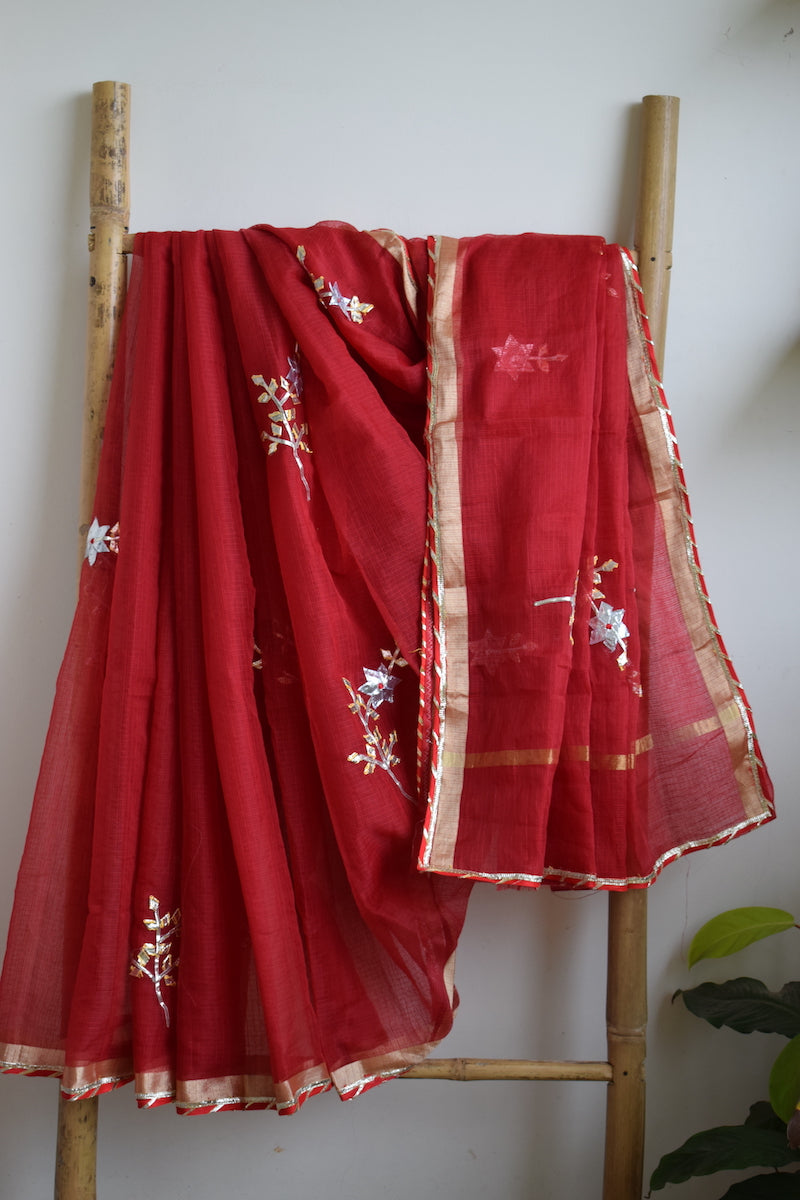 Red Cotton Kota Doriya with Kaccha Gotapatti work Saree