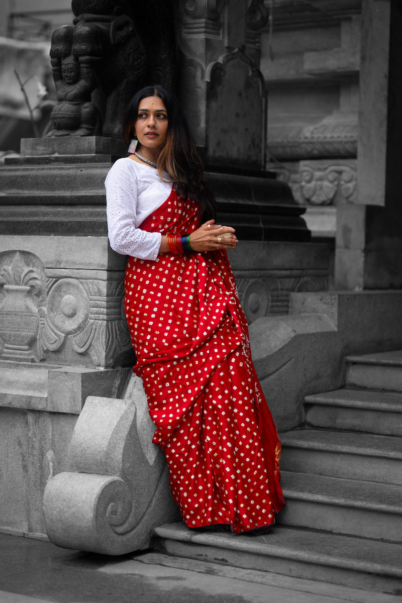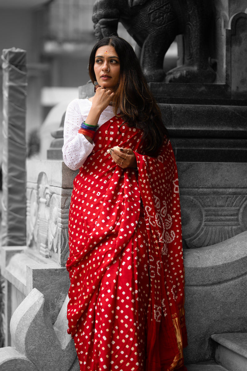 Red Modal Silk Bandhani Saree