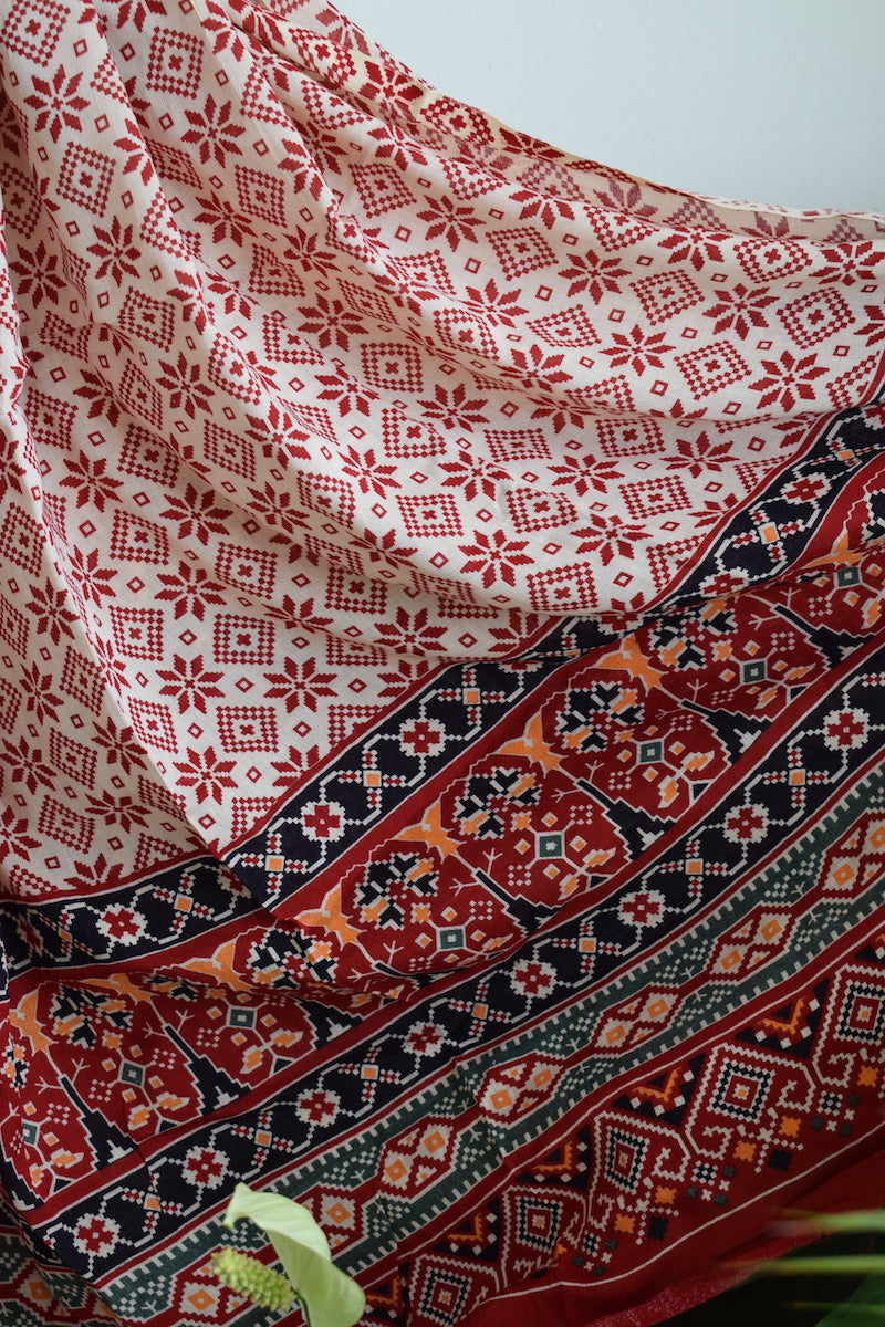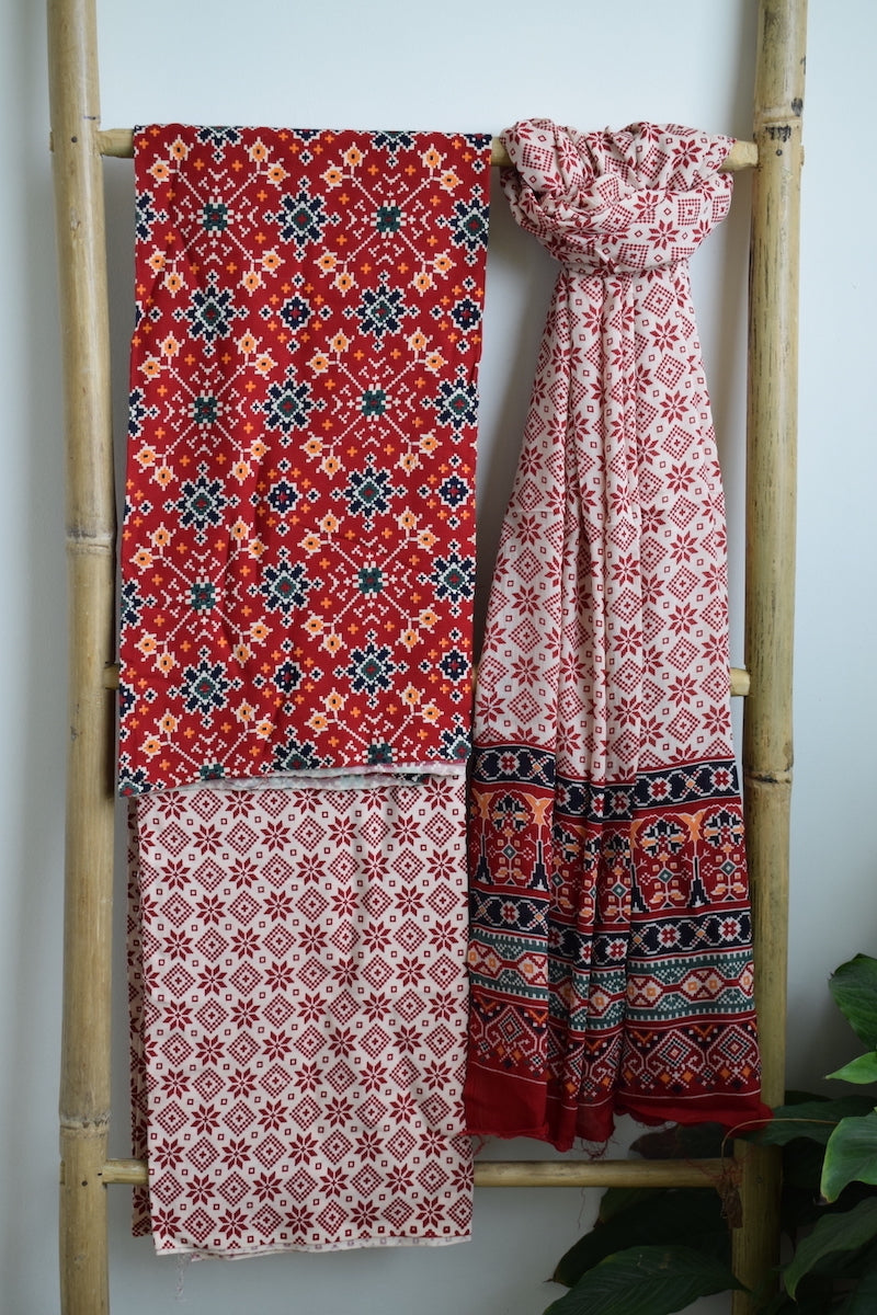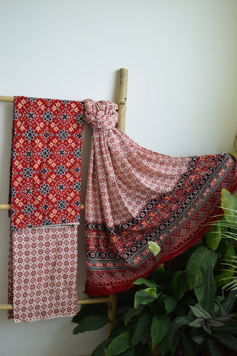 Red Patola Print Cotton Suit Dupatta Set