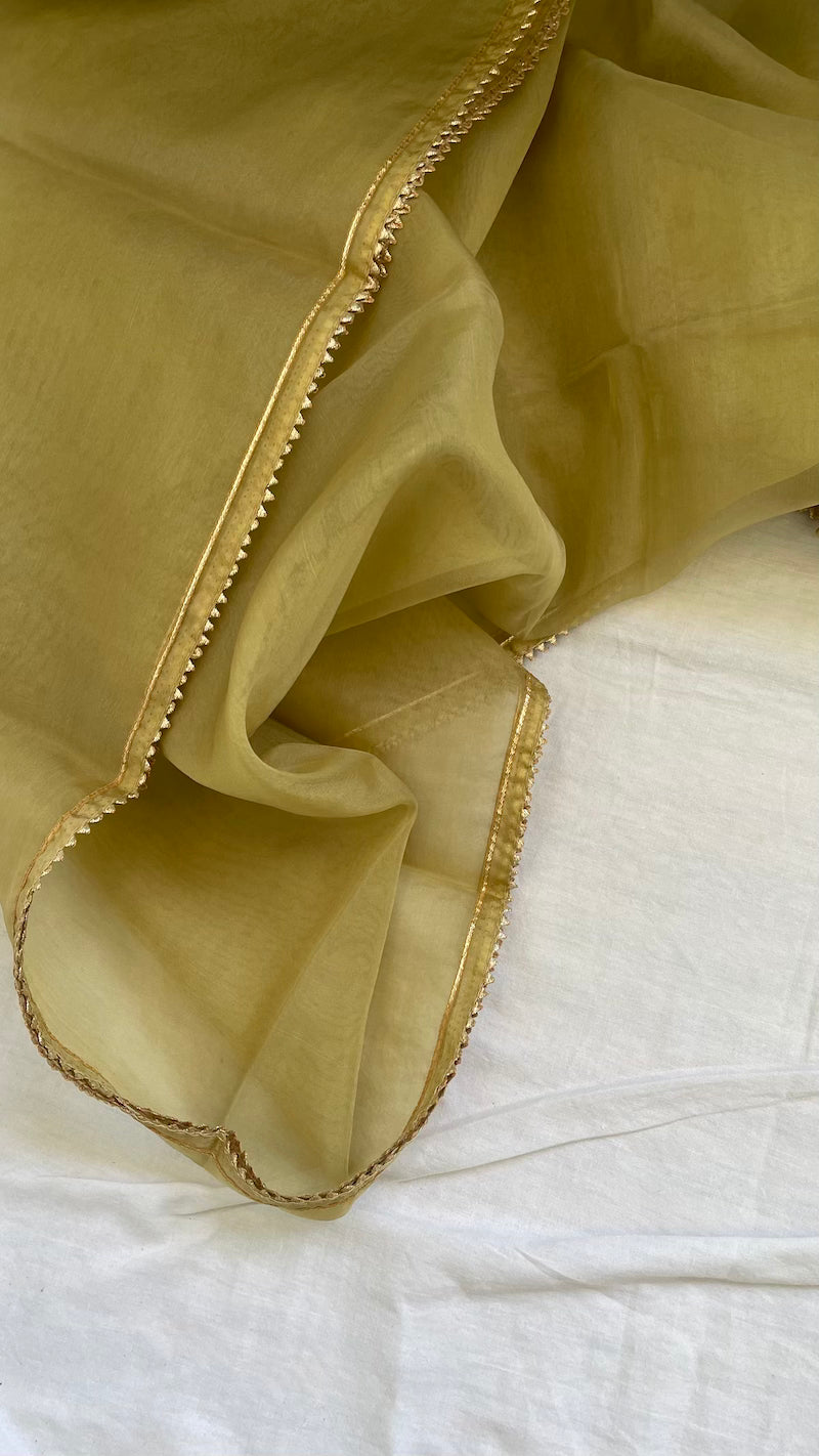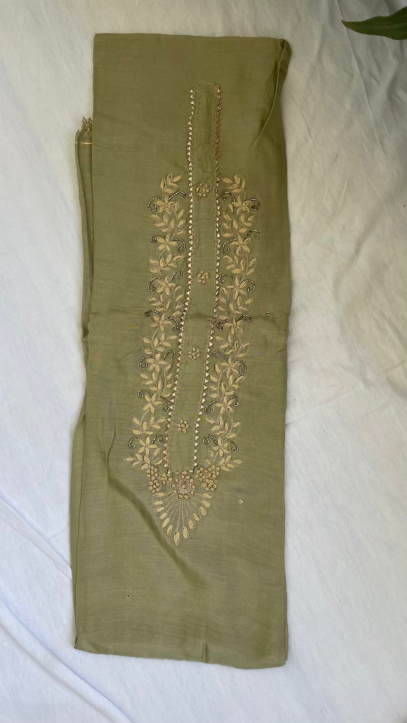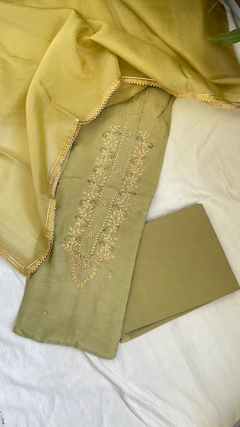Sage Green Muslin Silk Suit Dupatta Set with Gotapatti Work