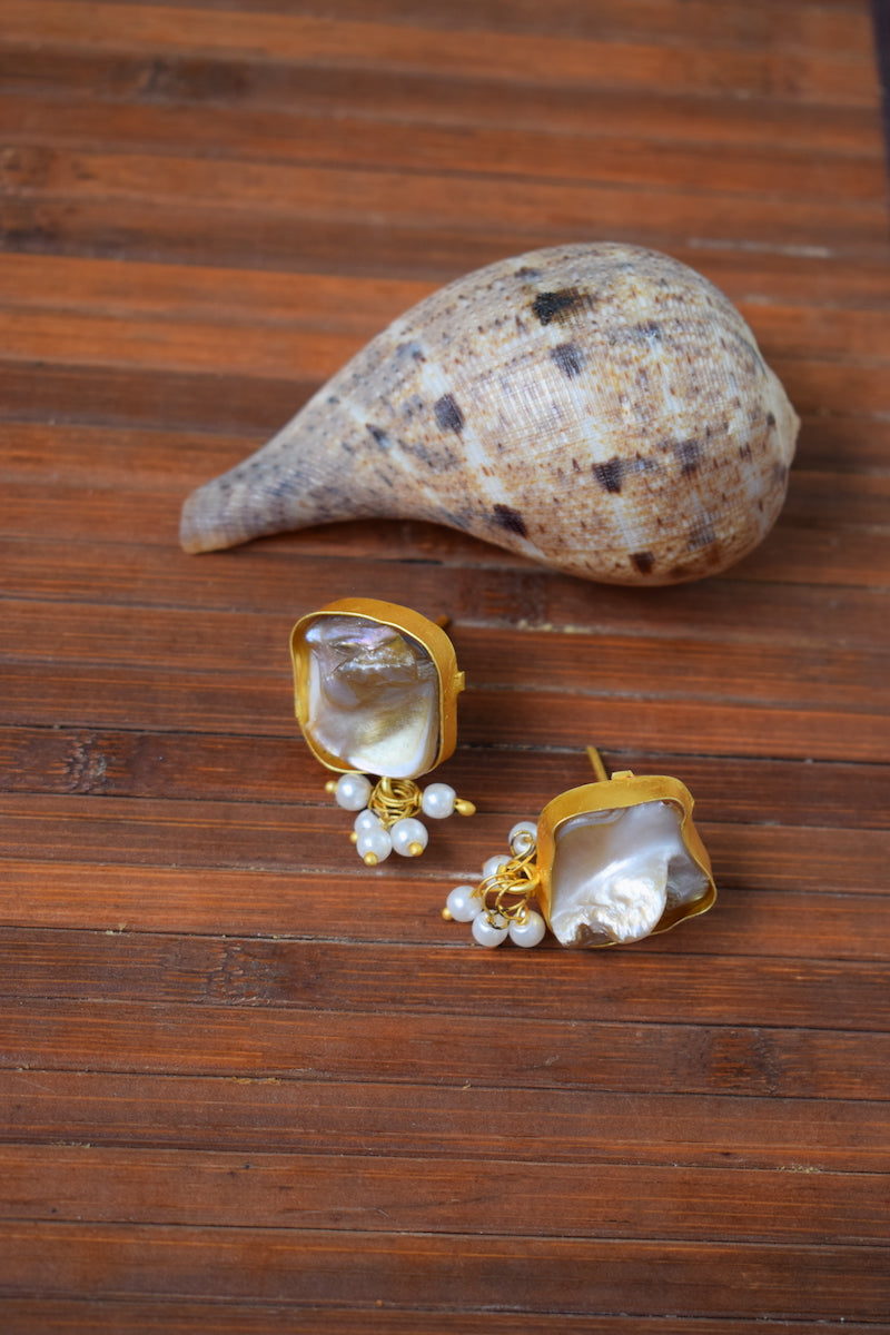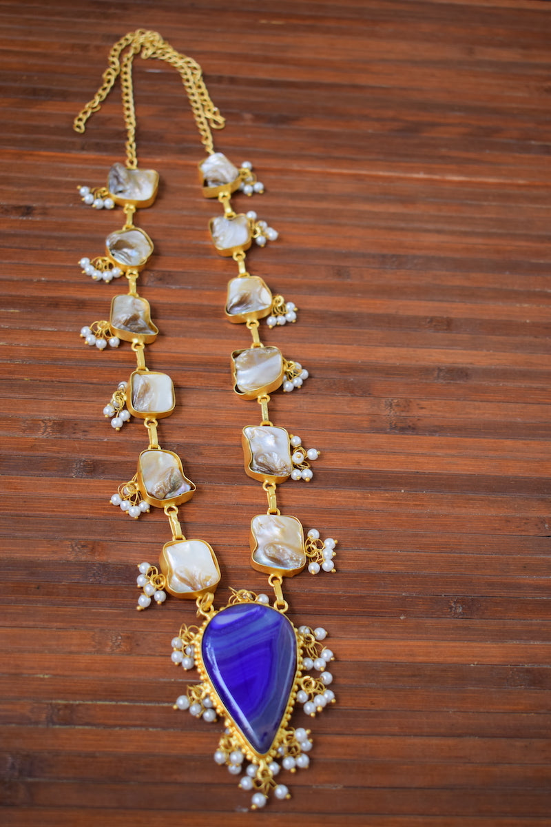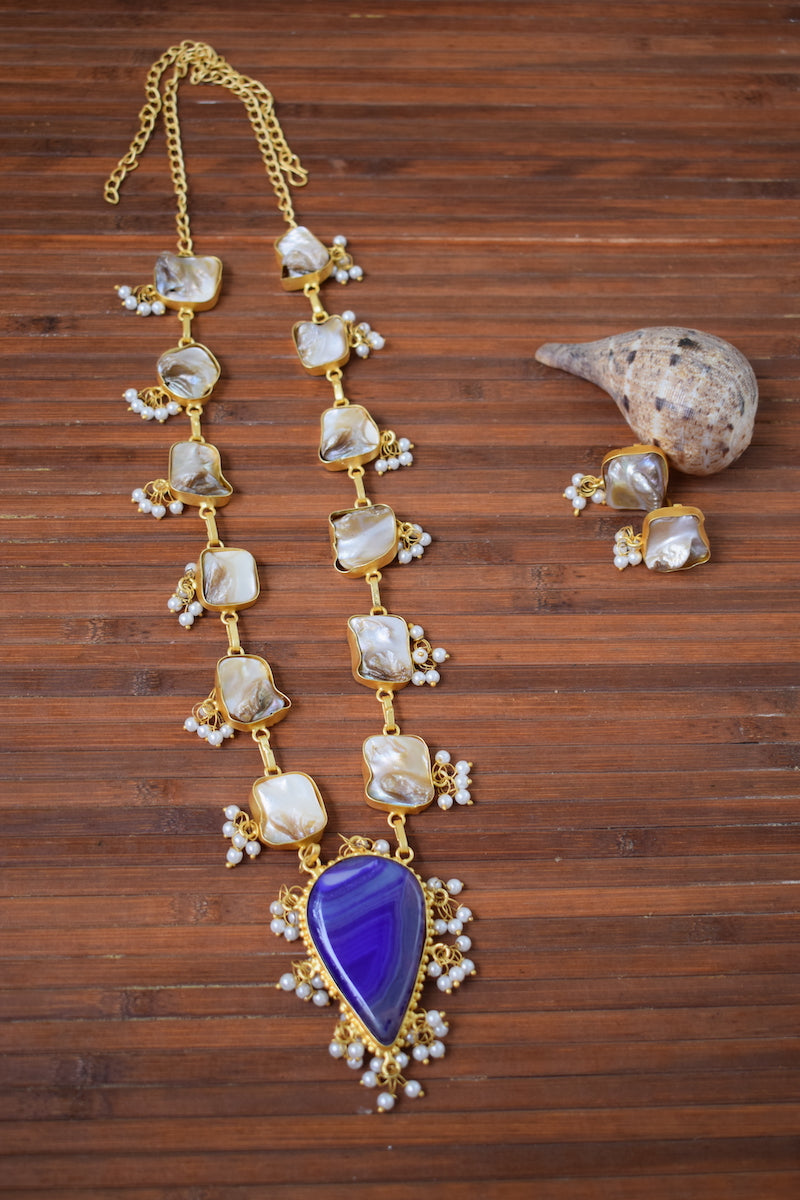 Seashell Jewelry Set with Blue Stone Pendant