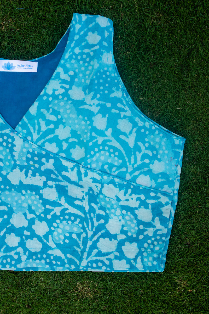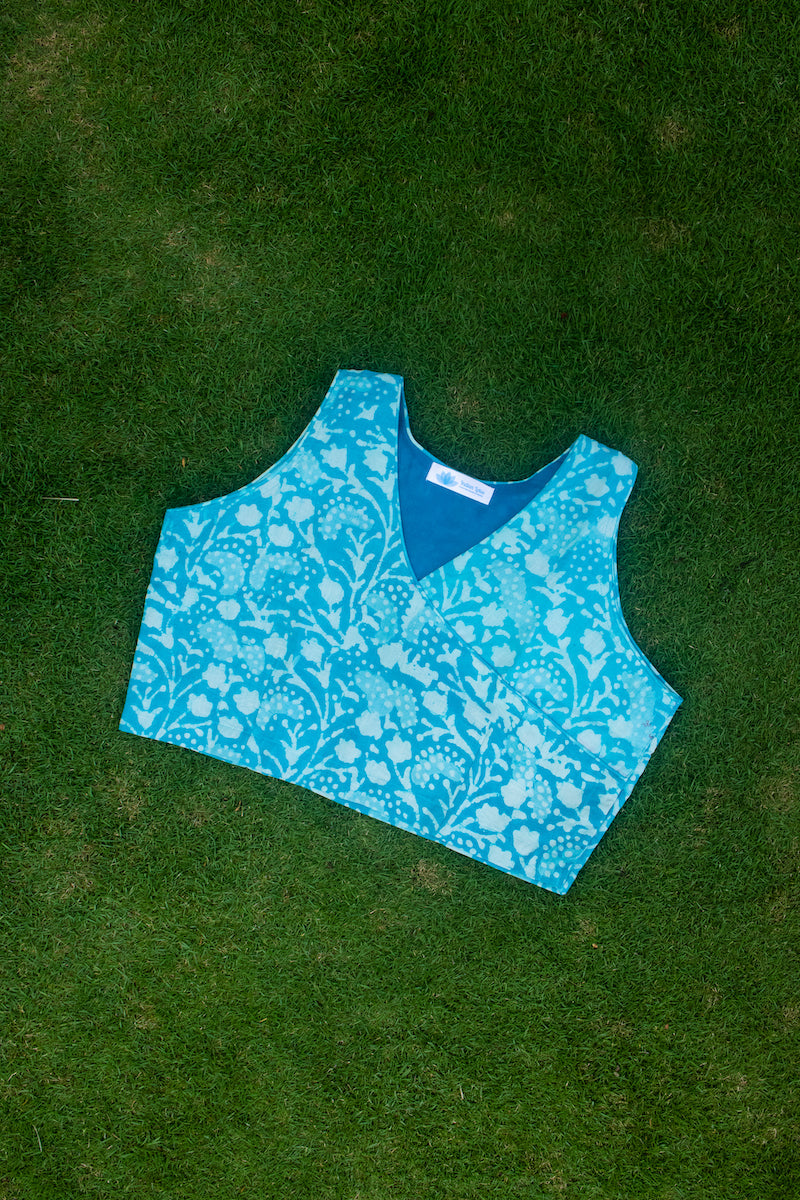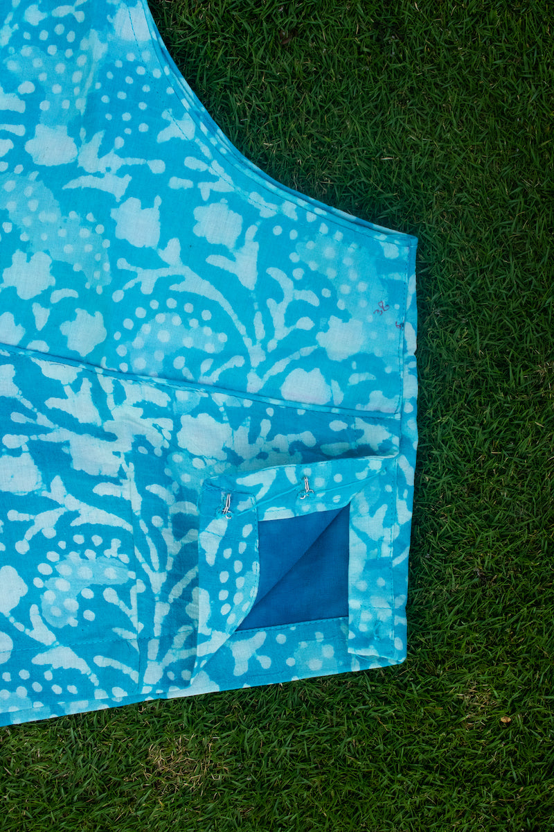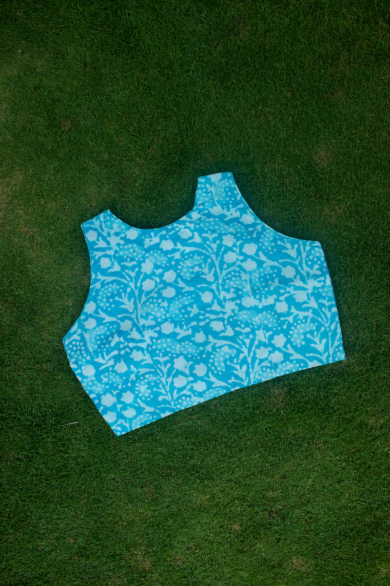 Sky Blue Cotton Block Printed Blouse