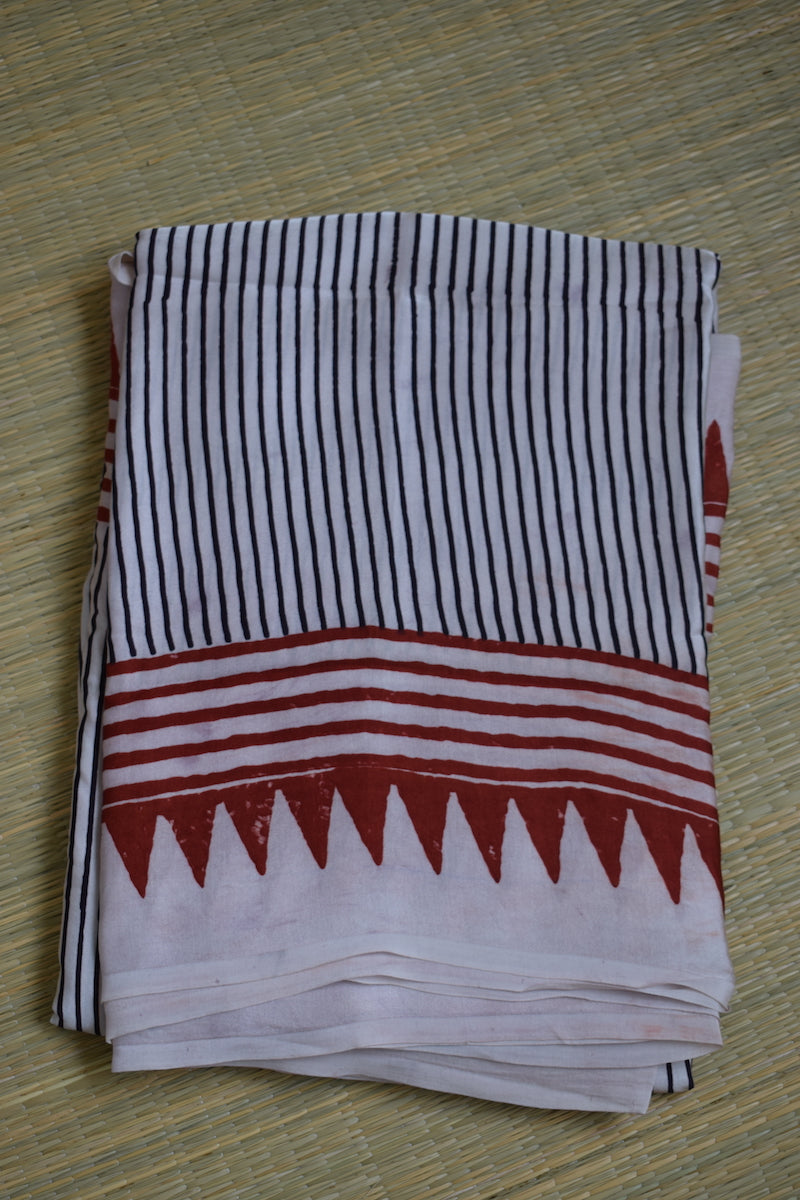 White Modal Silk Ajrakh Saree