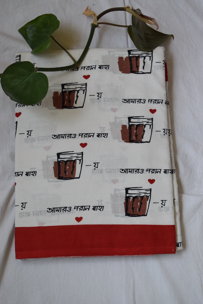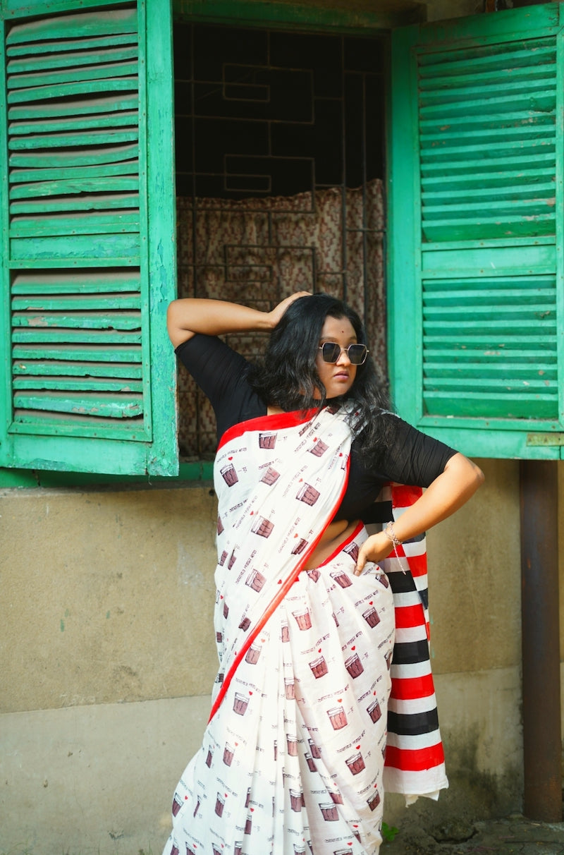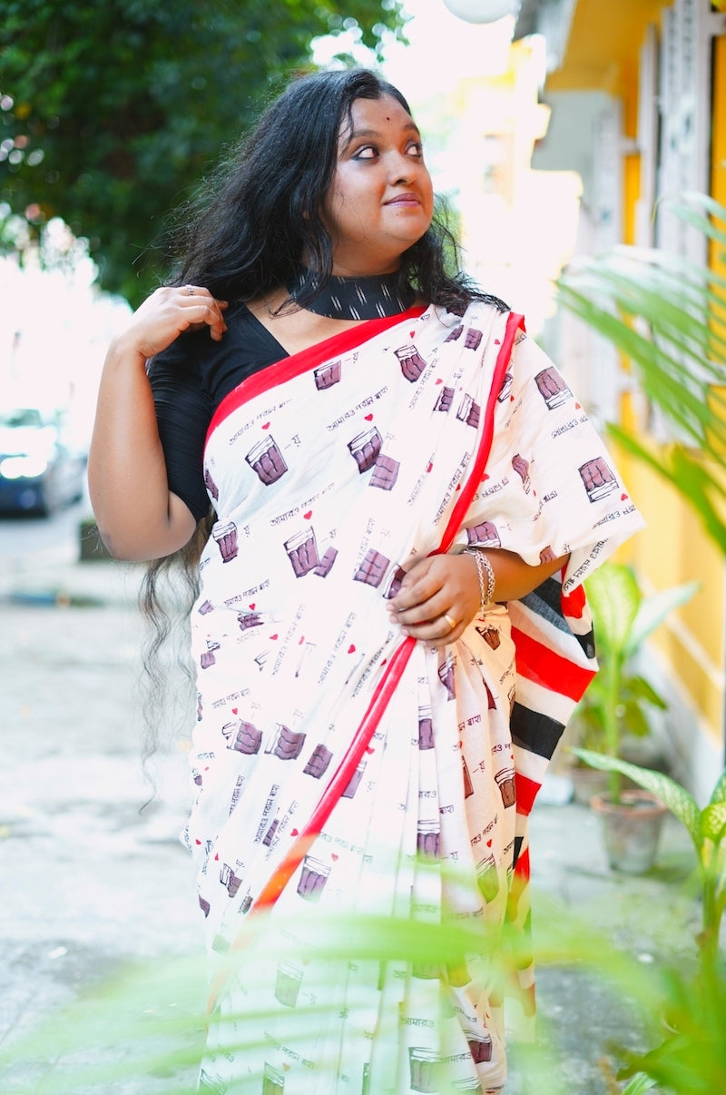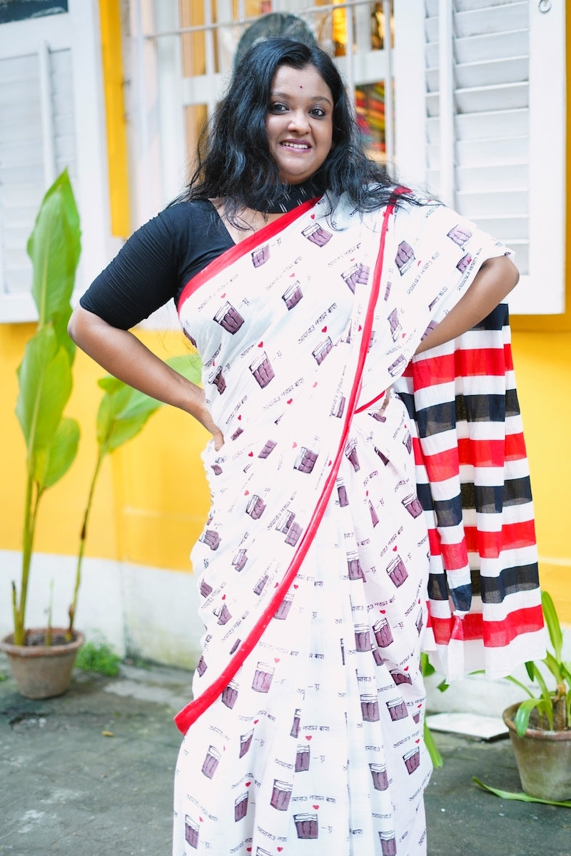 White Printed Mul Cotton Saree