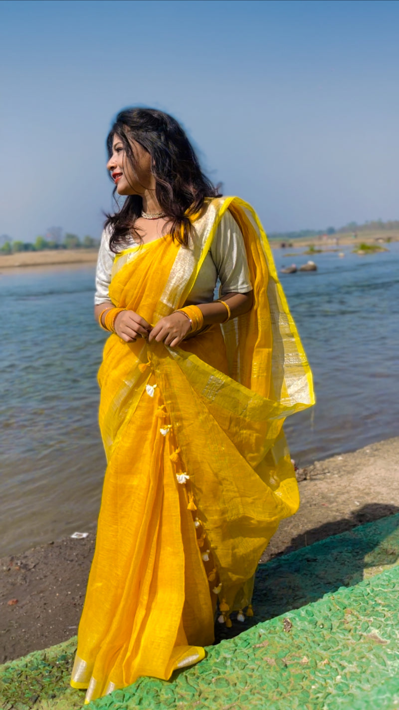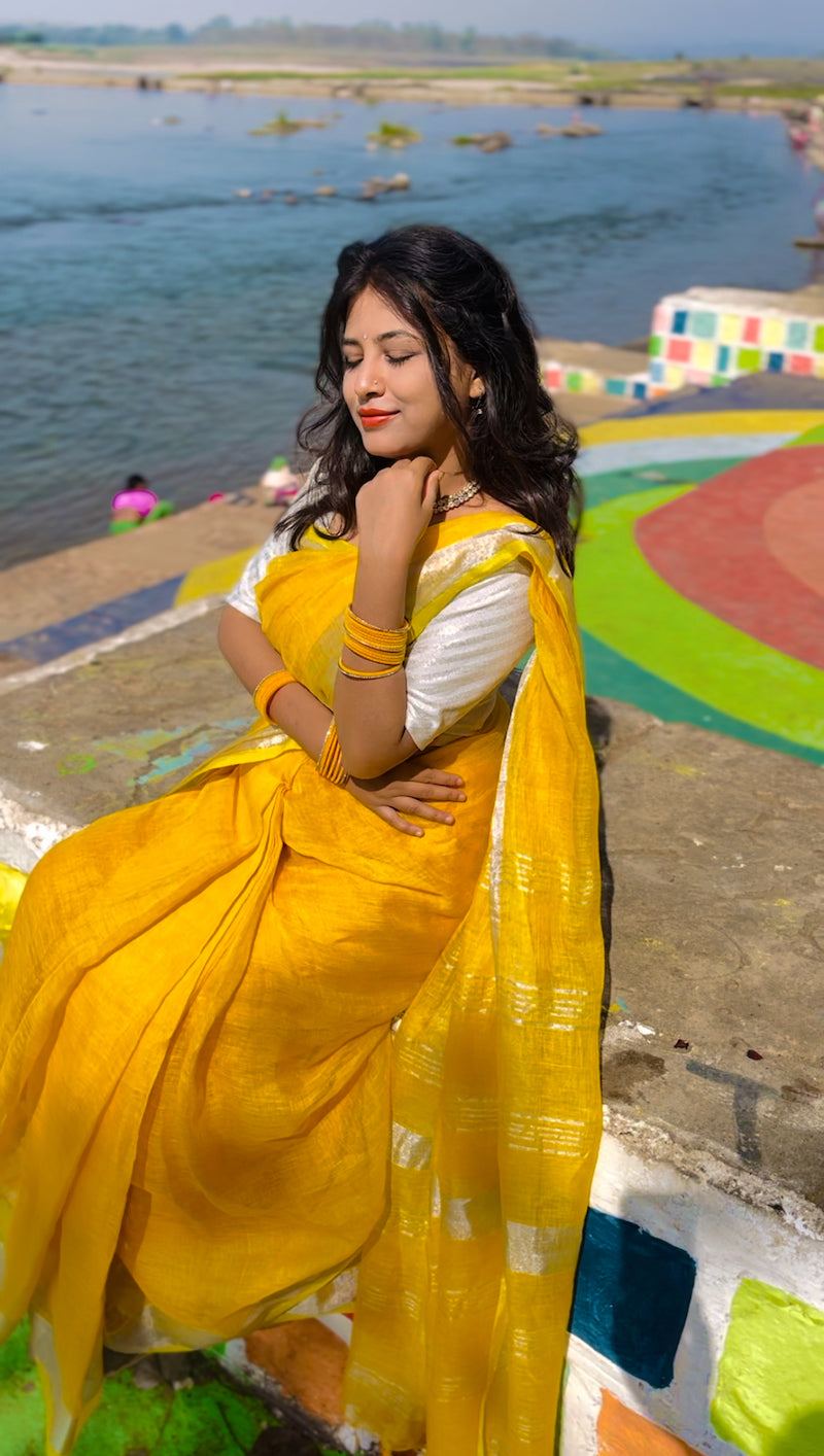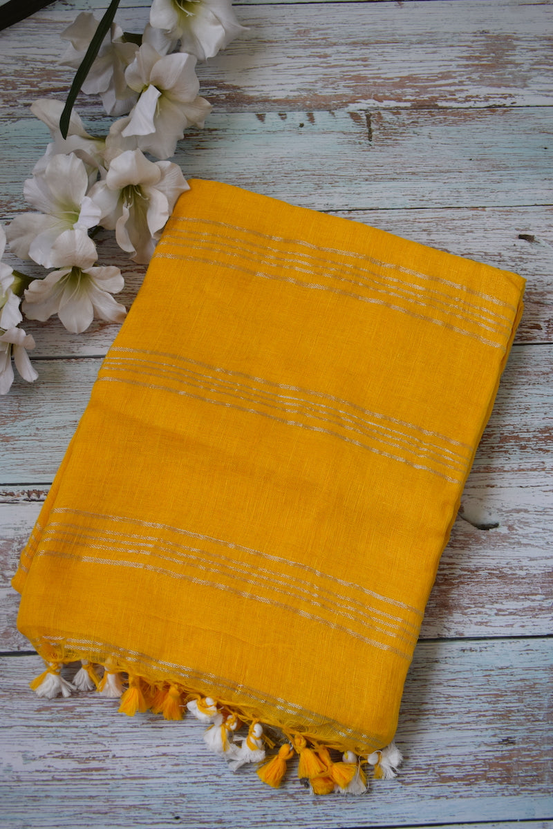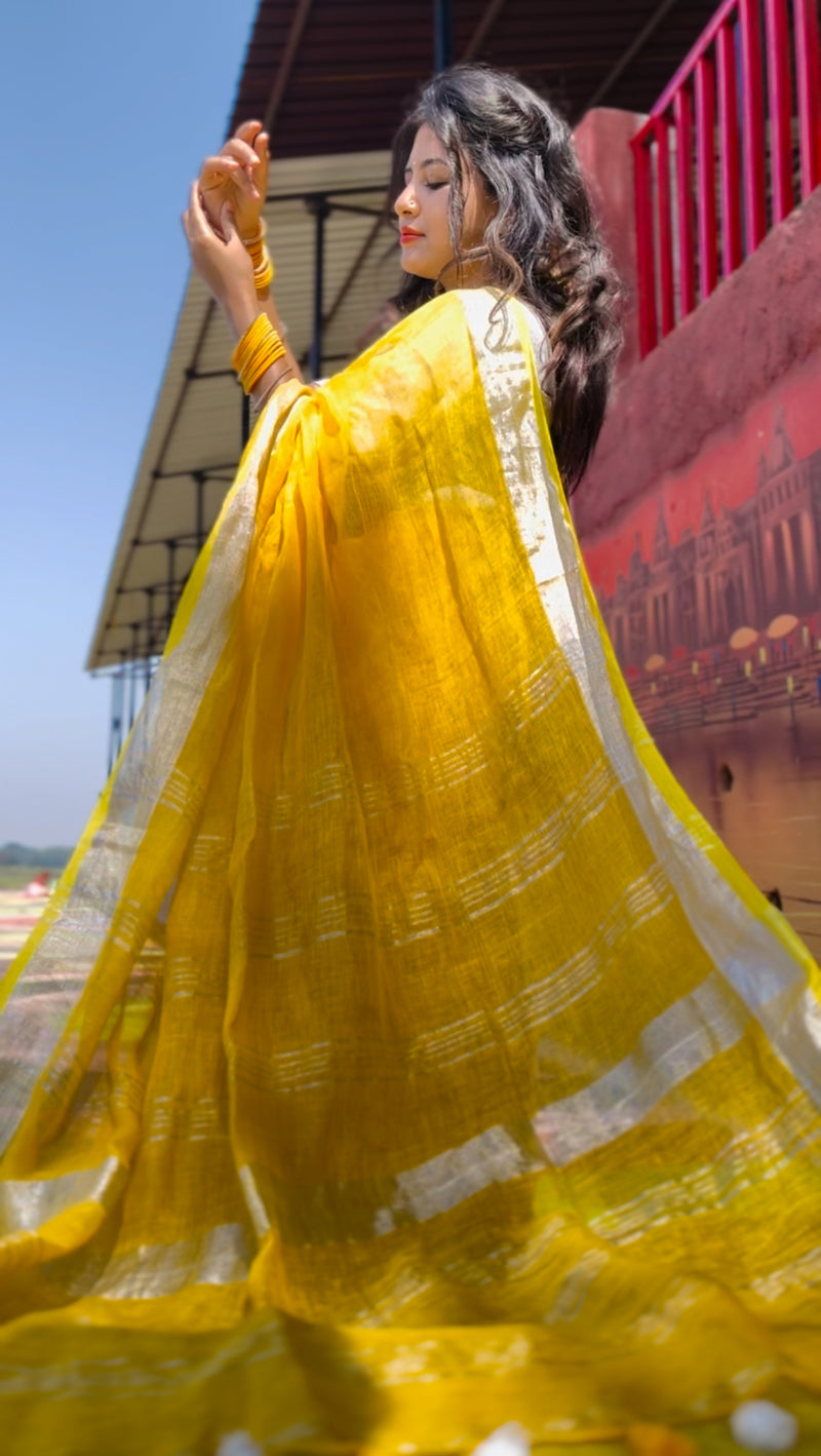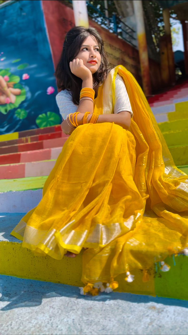 Yellow Linen Saree