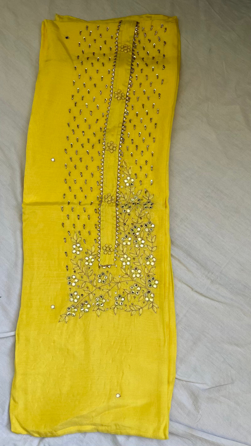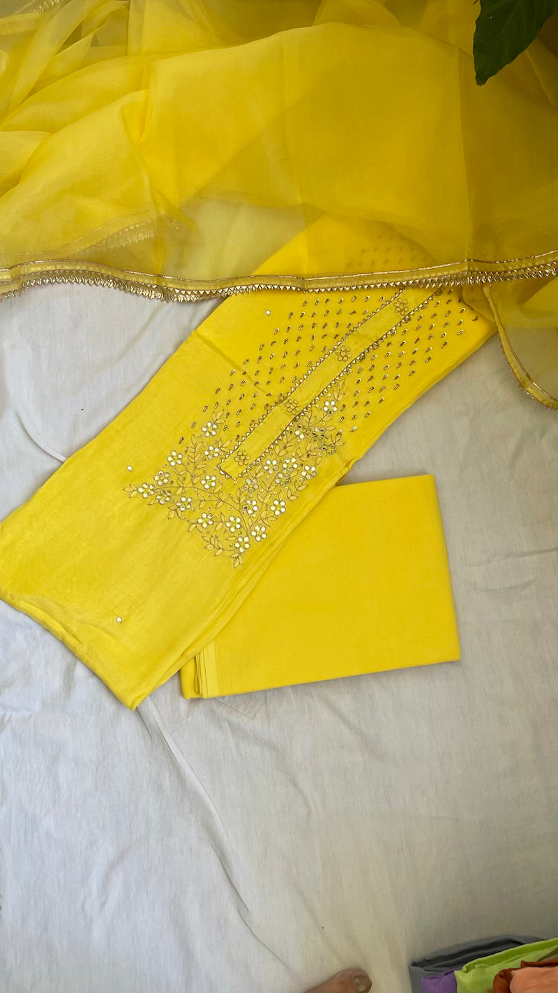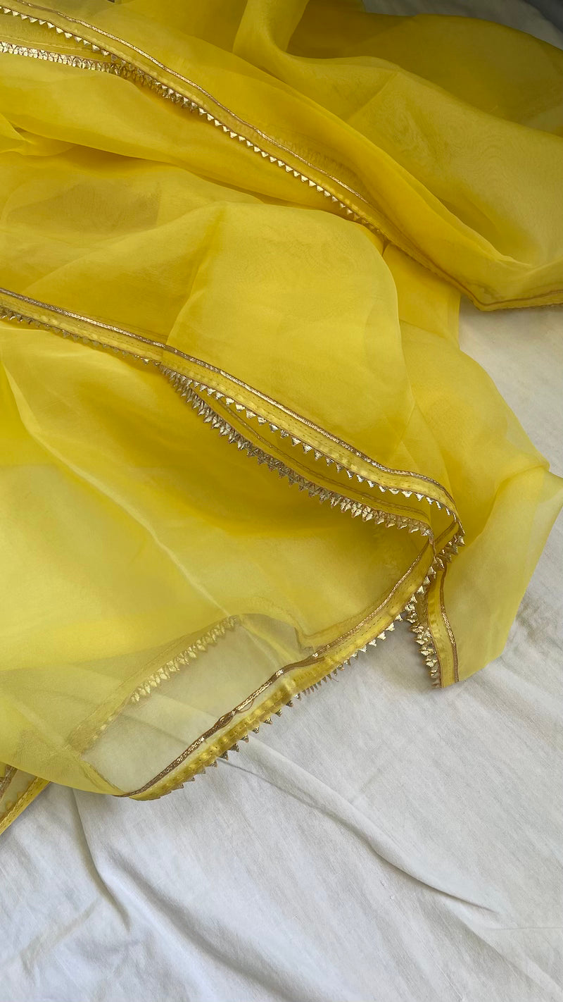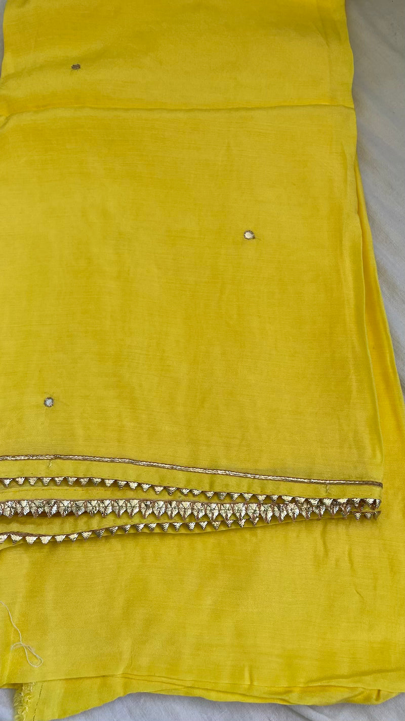 Yellow Muslin Silk Suit Dupatta Set with Gotapatti Work
