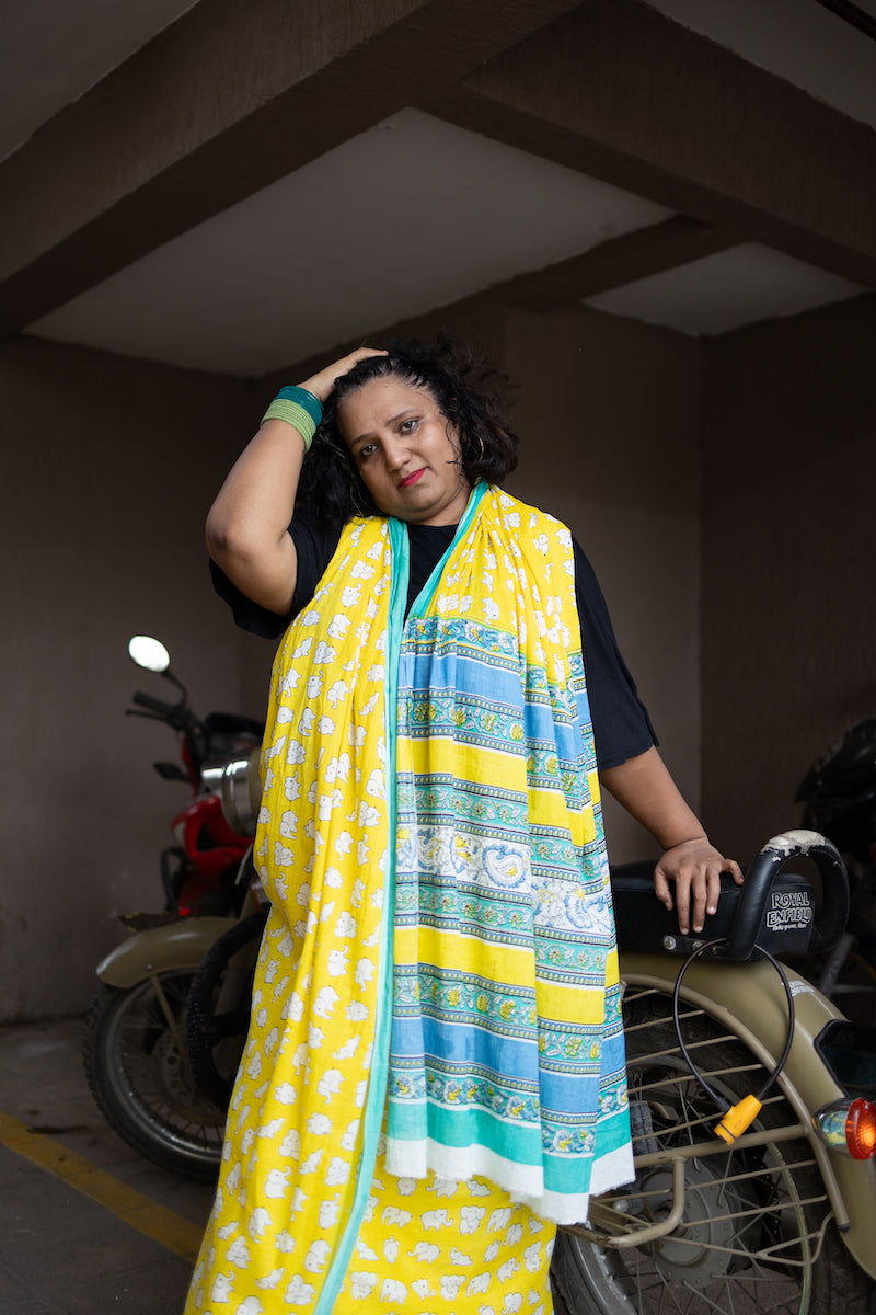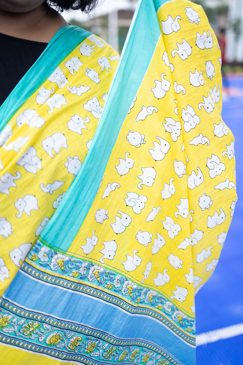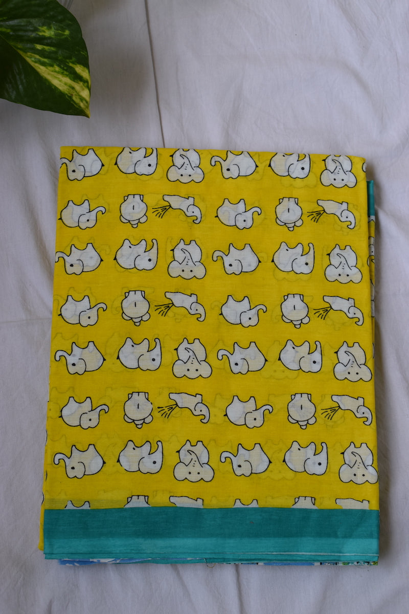 Yellow Printed Mul Cotton Saree
