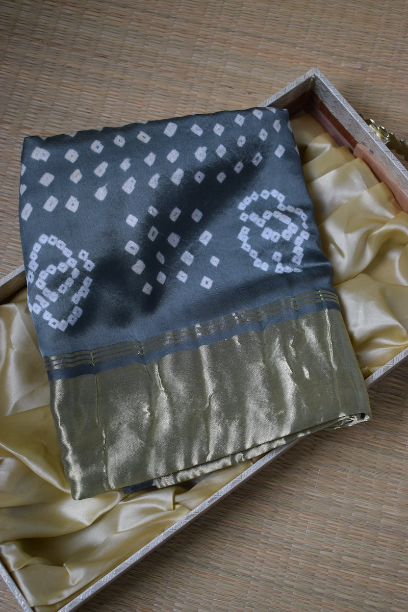 Grey Modal Silk Bandhani Saree