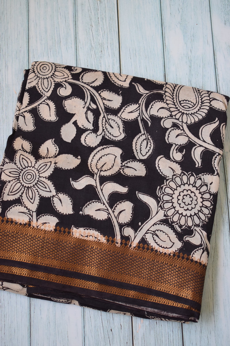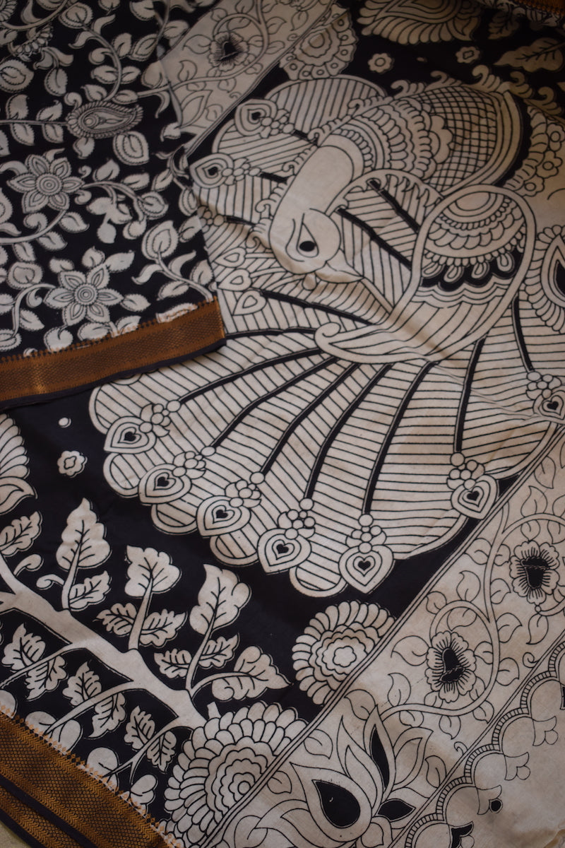 Black Kalamkari Chennuri Silk Saree with Nizam Border