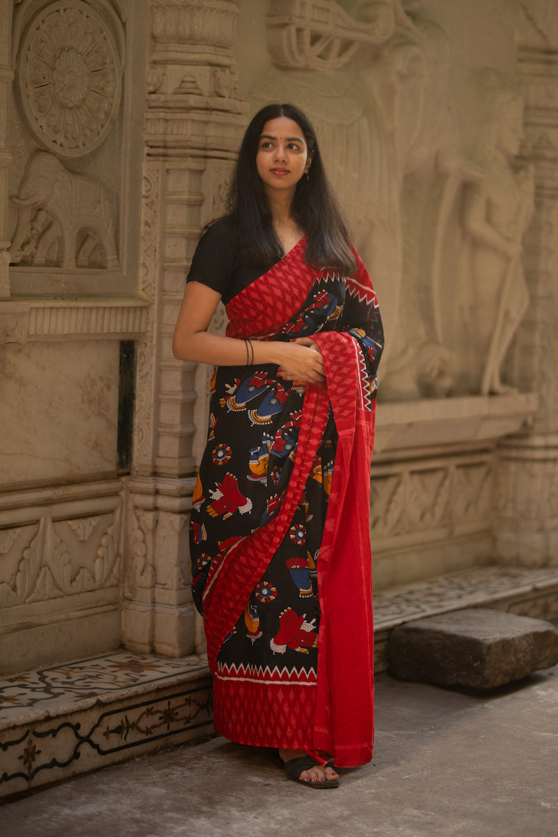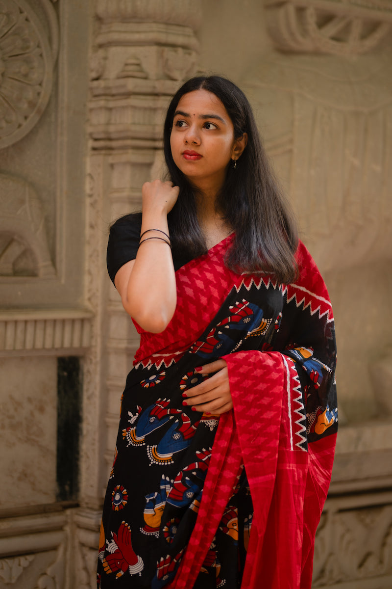 Black Mudra Printed Mul Cotton Saree