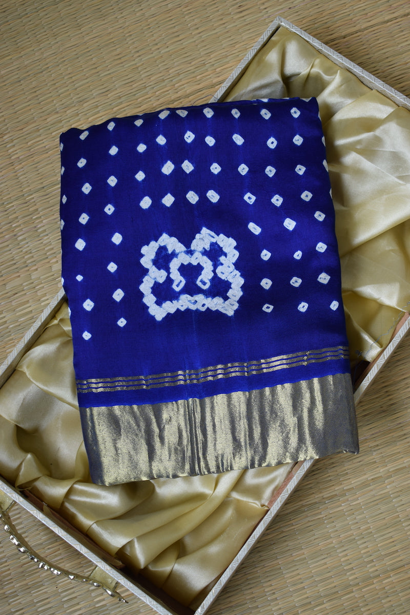 Navy Blue Modal Silk Bandhani Saree