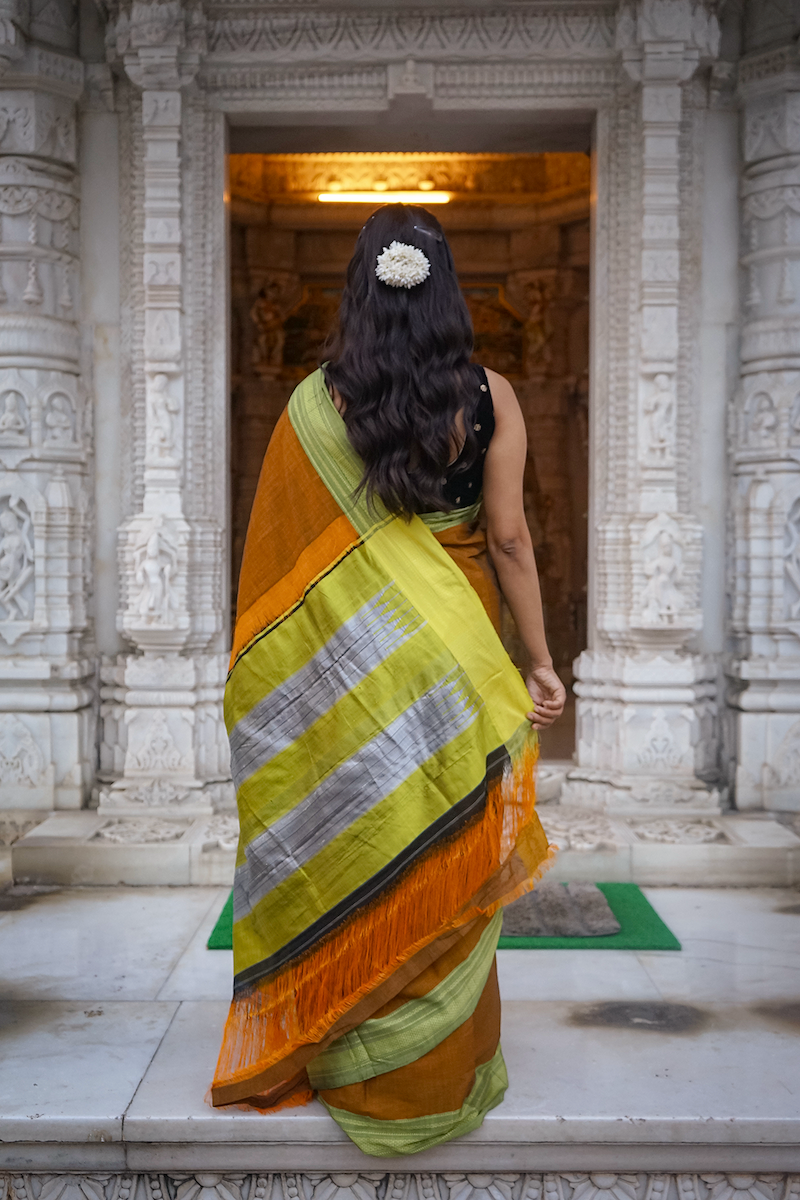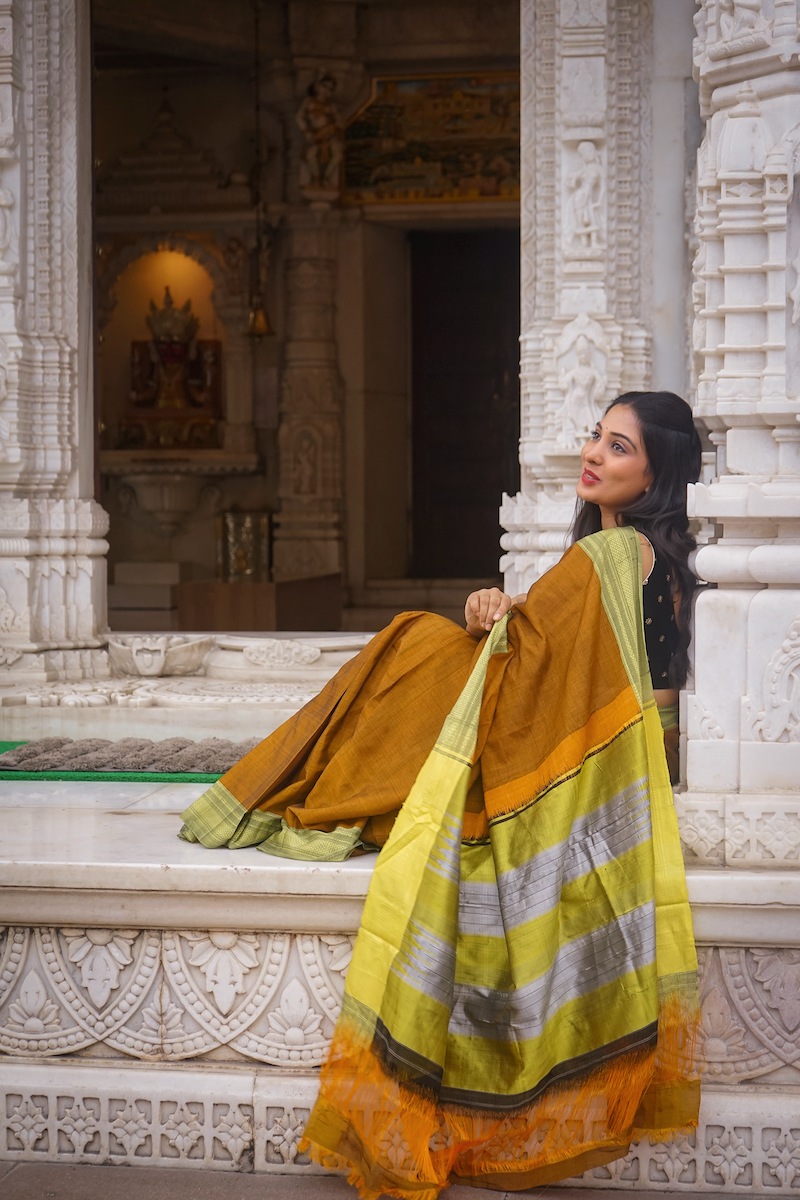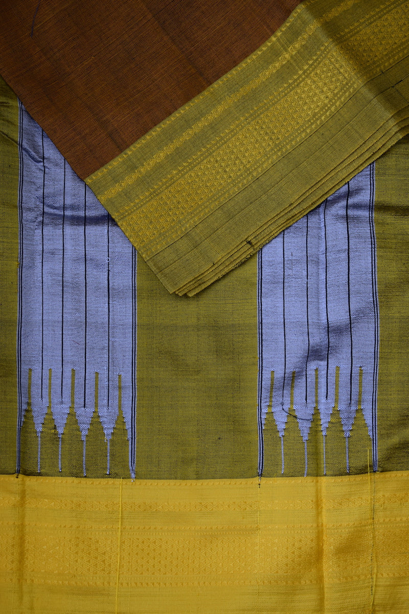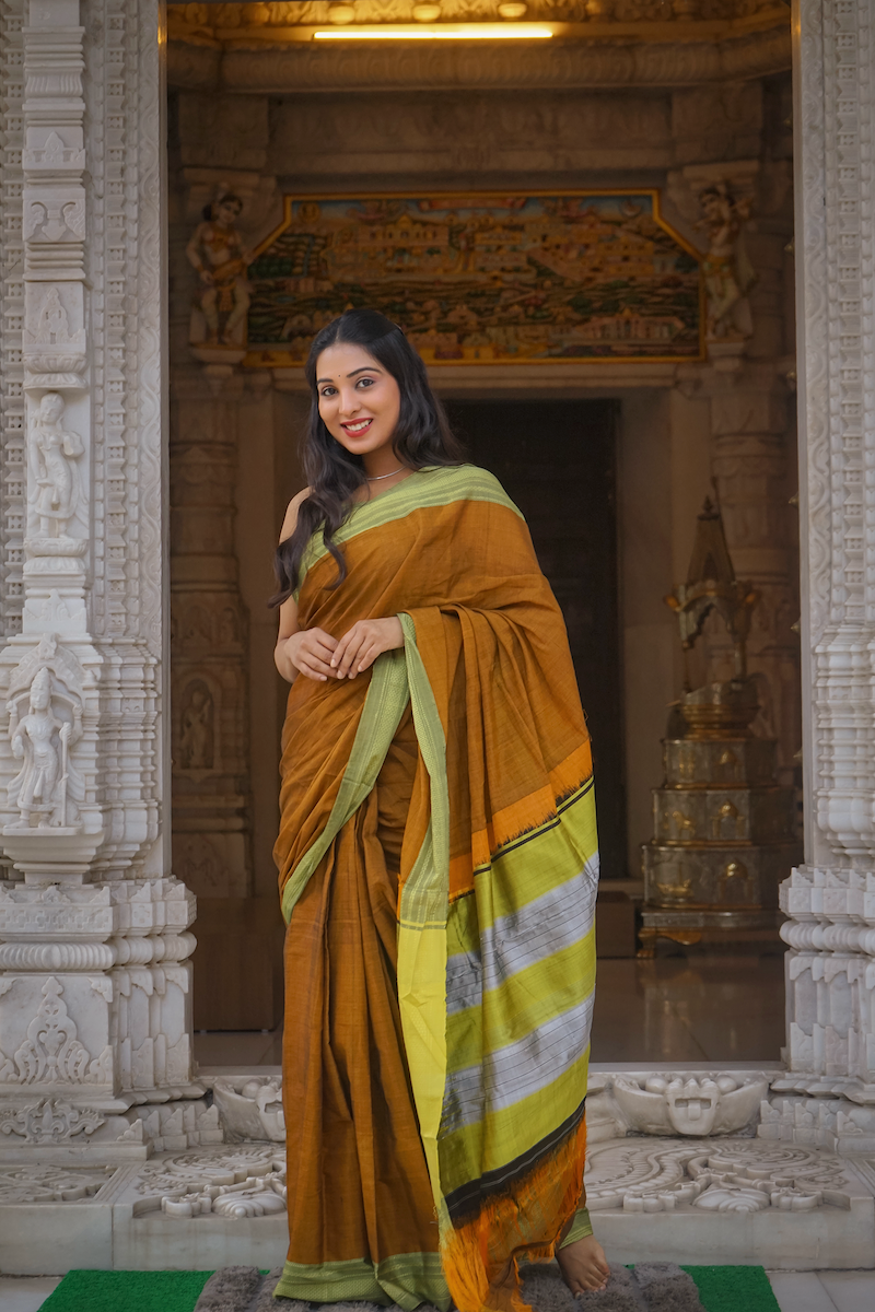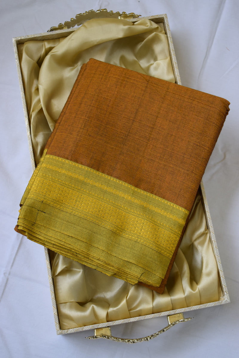 Honey Brown Ilkal Viscose Saree with Chikki Paras Border