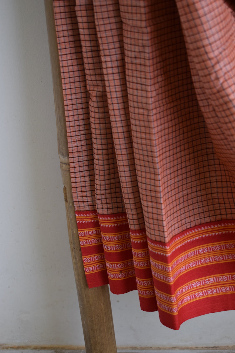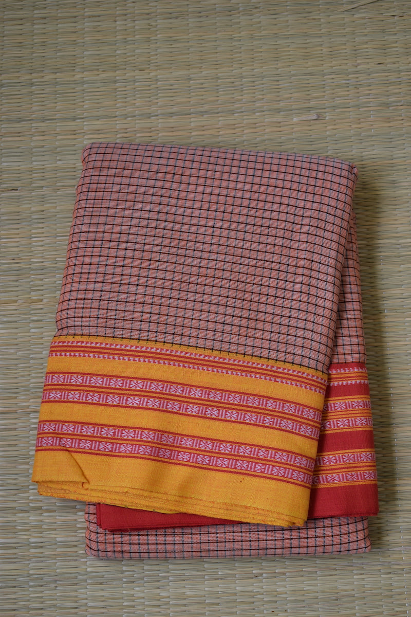 Coral Pattada Anchu Cotton Saree with Gomedadi Border