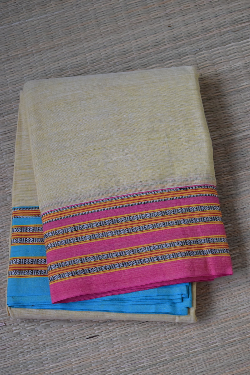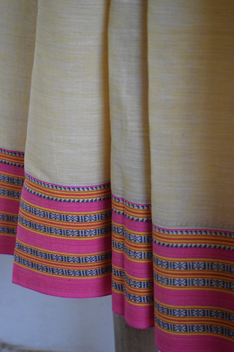 Light Yellow Pattada Anchu Cotton Saree with Gomedadi Border