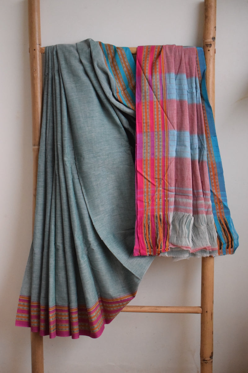 Mint Green Pattada Anchu Cotton Saree with Gomedadi Border