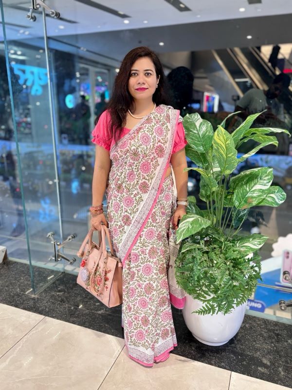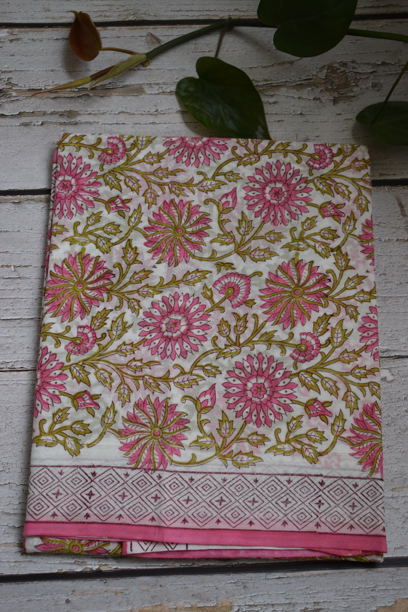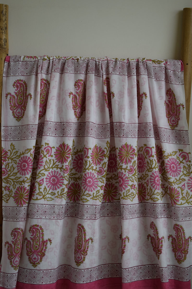 White Bagru Printed Mul Cotton Saree