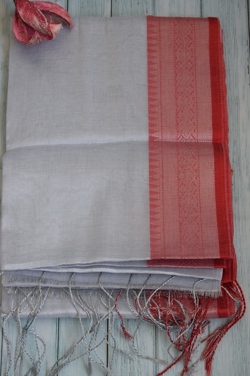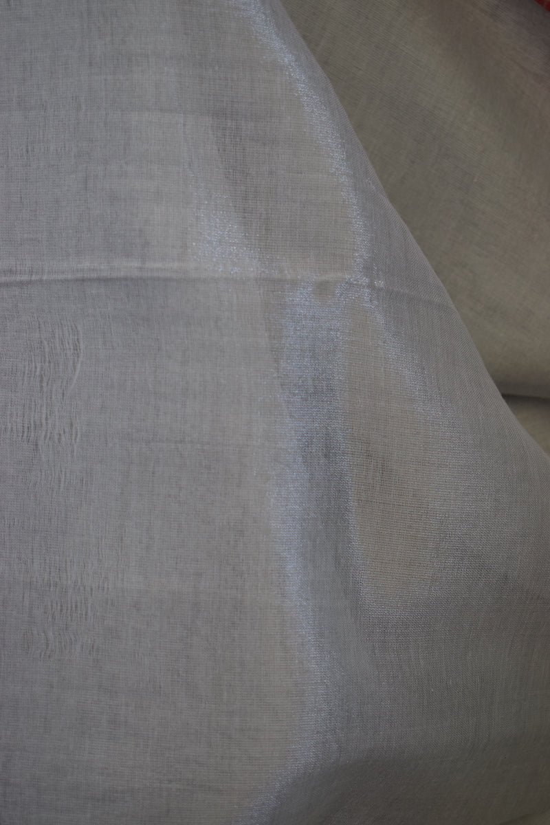 White Tissue Cotton Saree With Border
