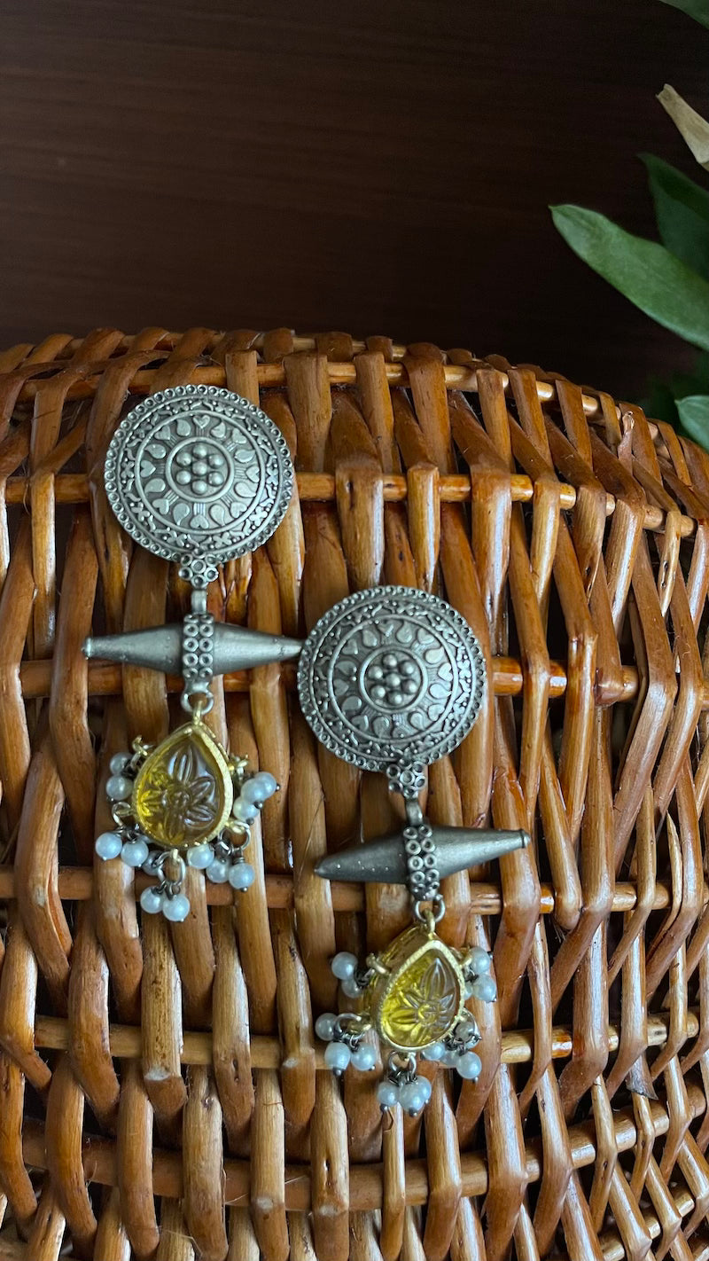 Golden Yellow Stone Silver Lookalike Earrings