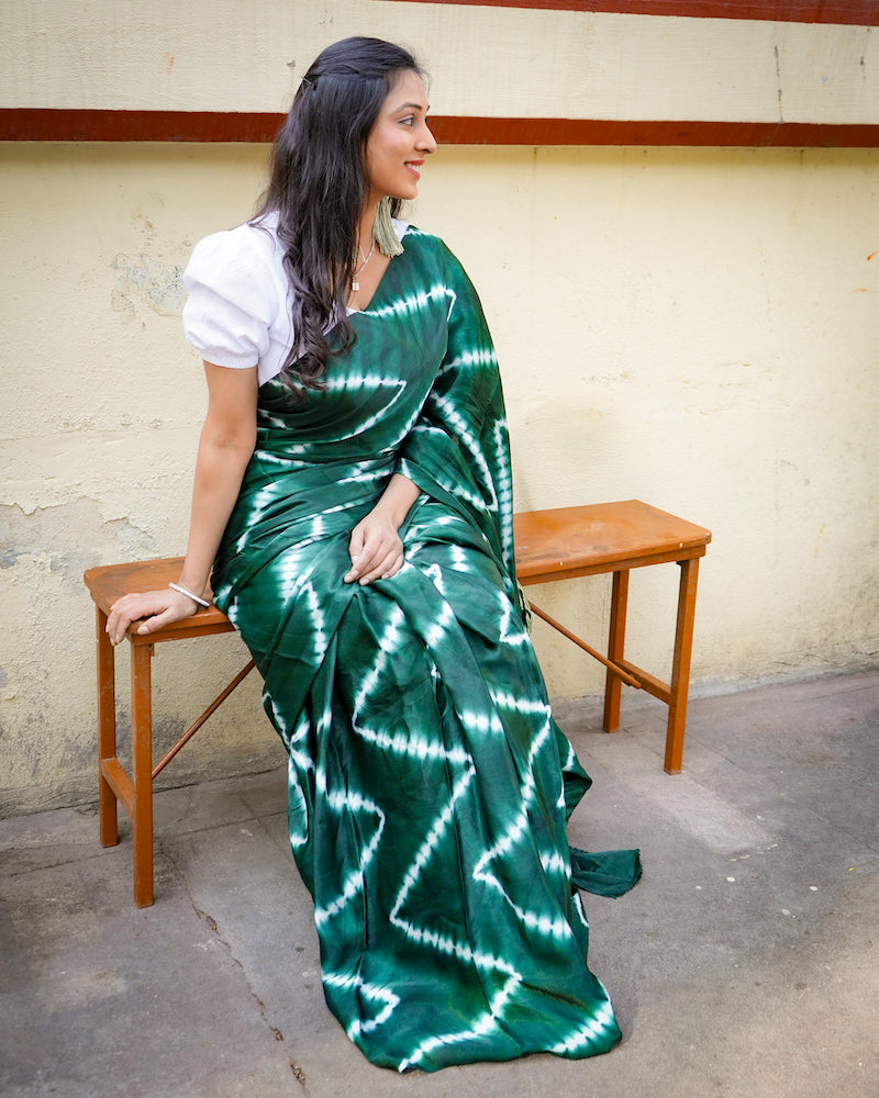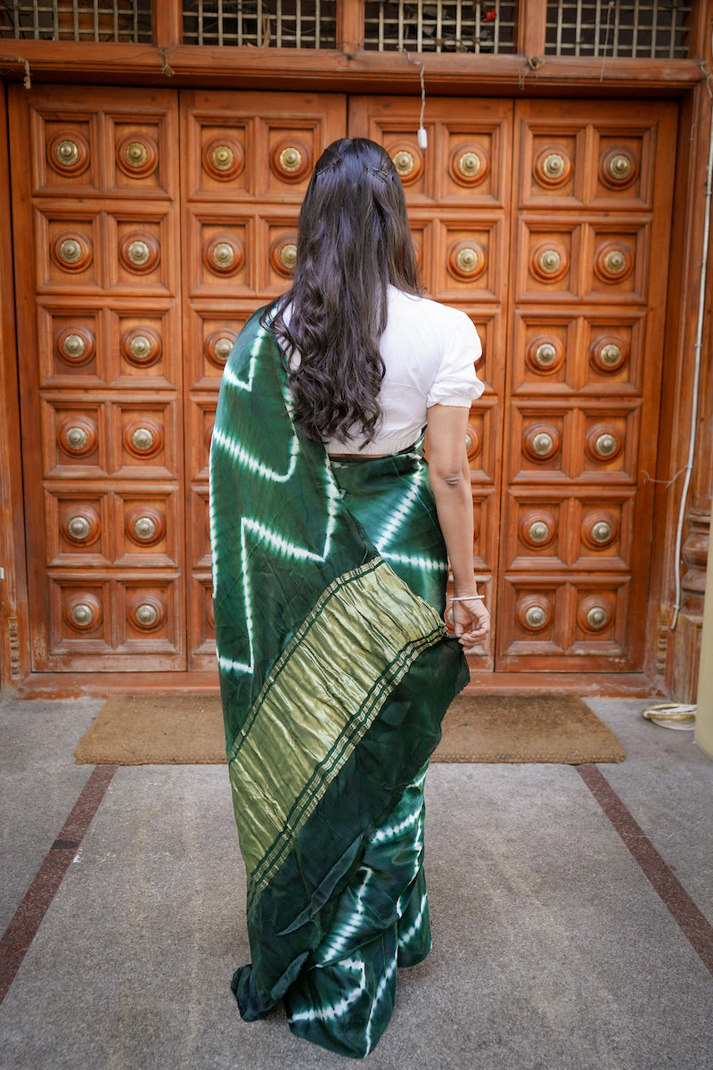 Bottle Green Lehariya Modal Silk Shibori Saree