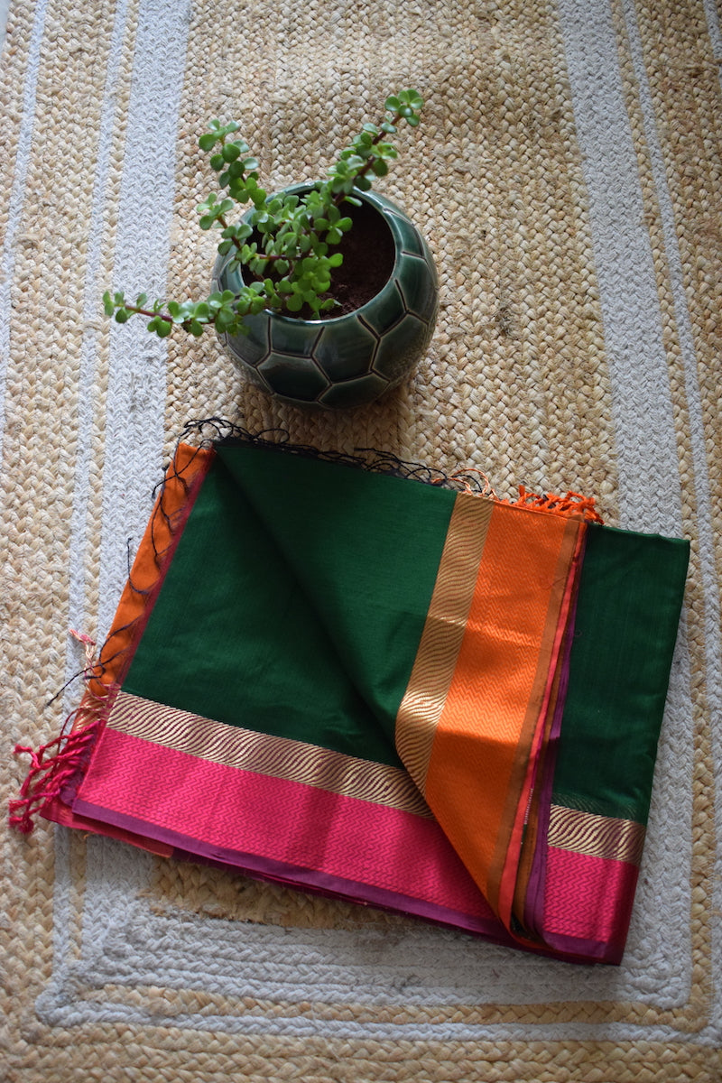 Leaf Green Maheshwari Silk Cotton Saree