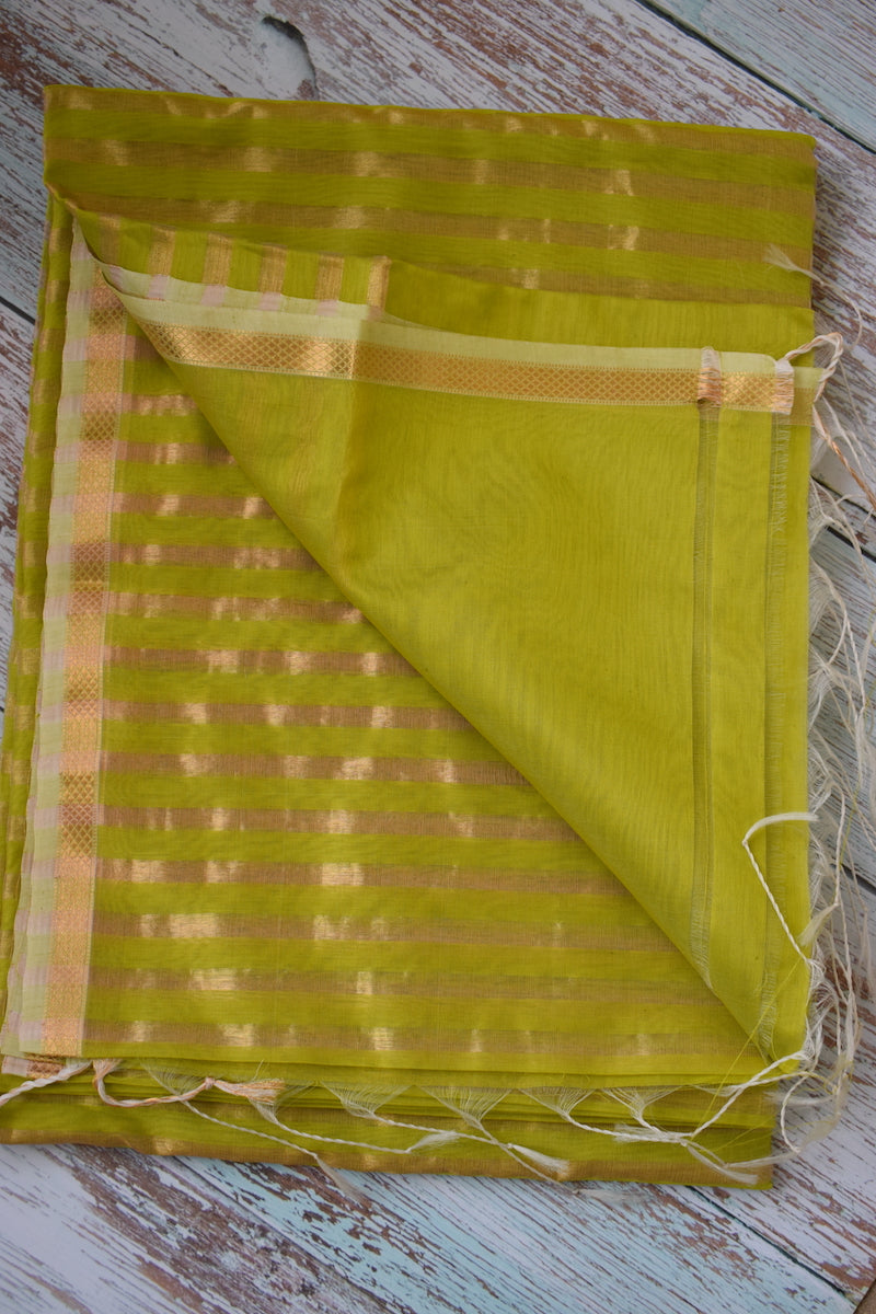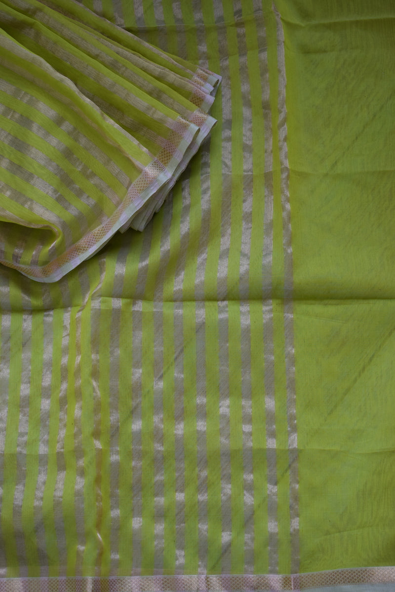 Lime Green Maheshwari Silk Cotton Saree