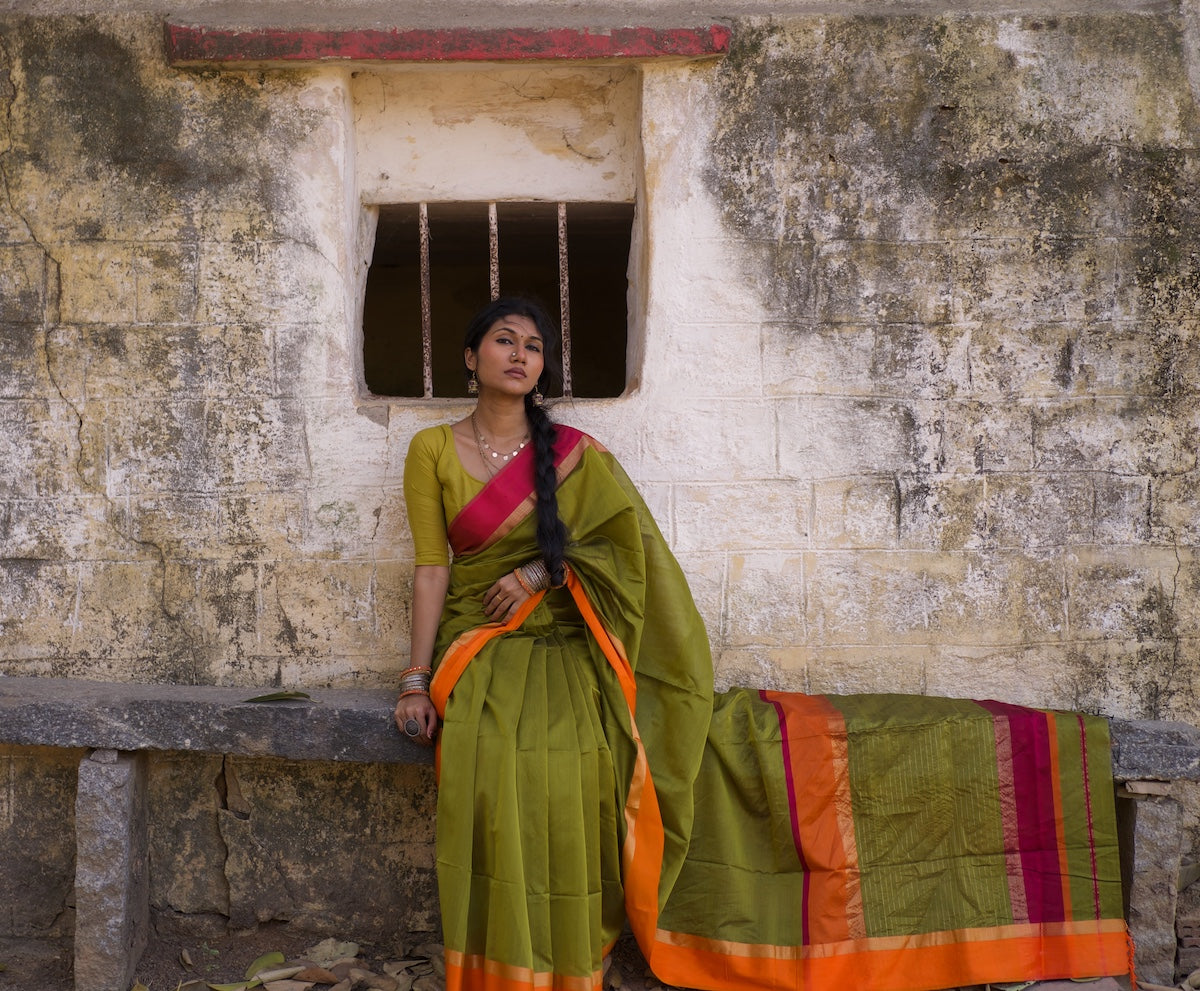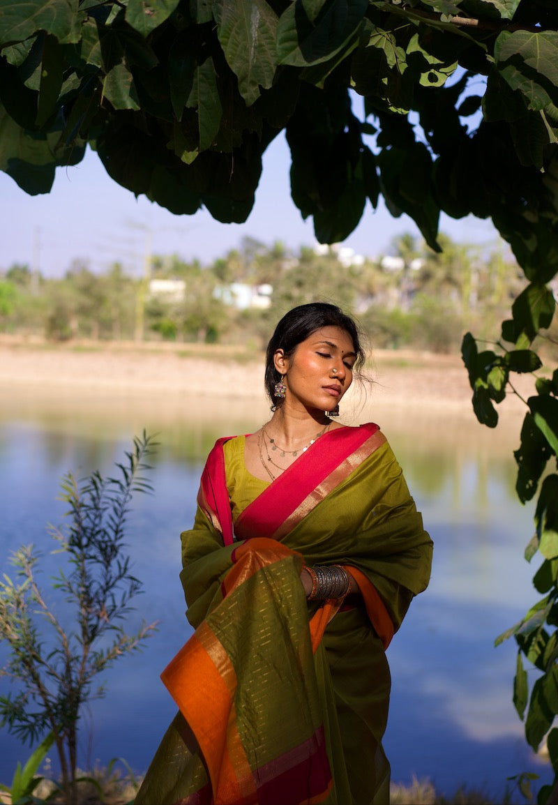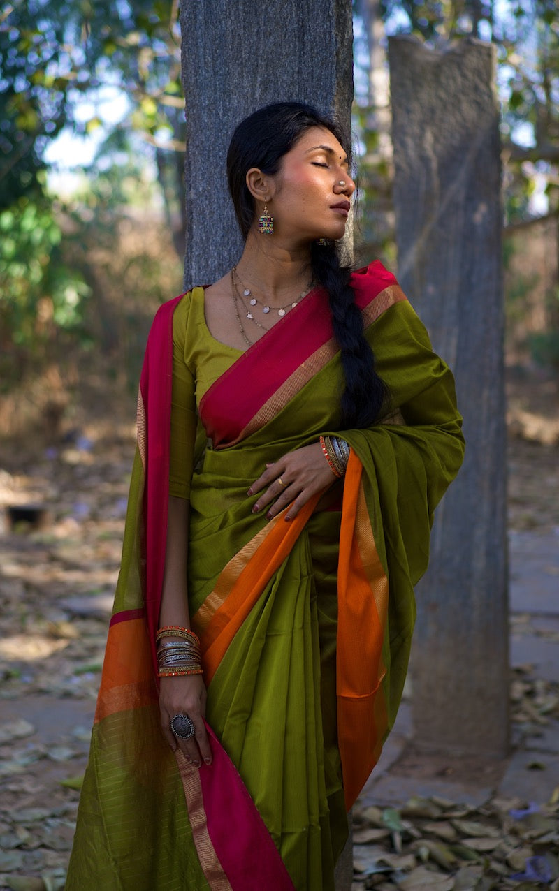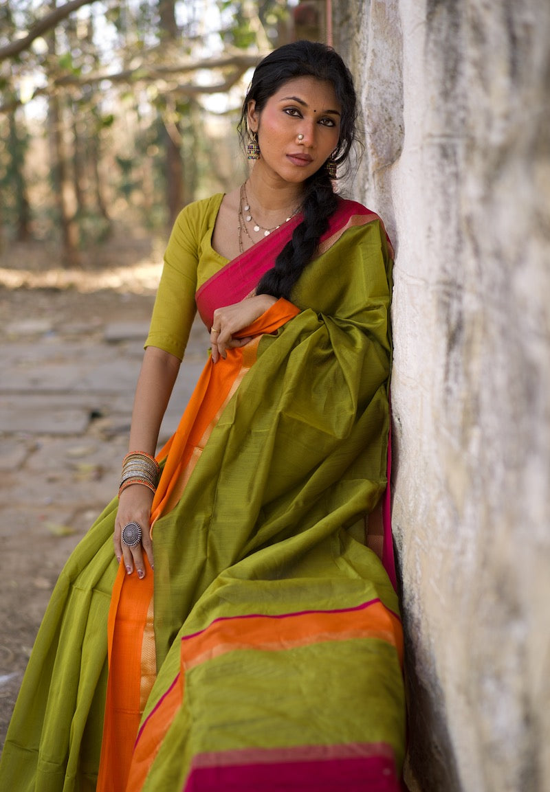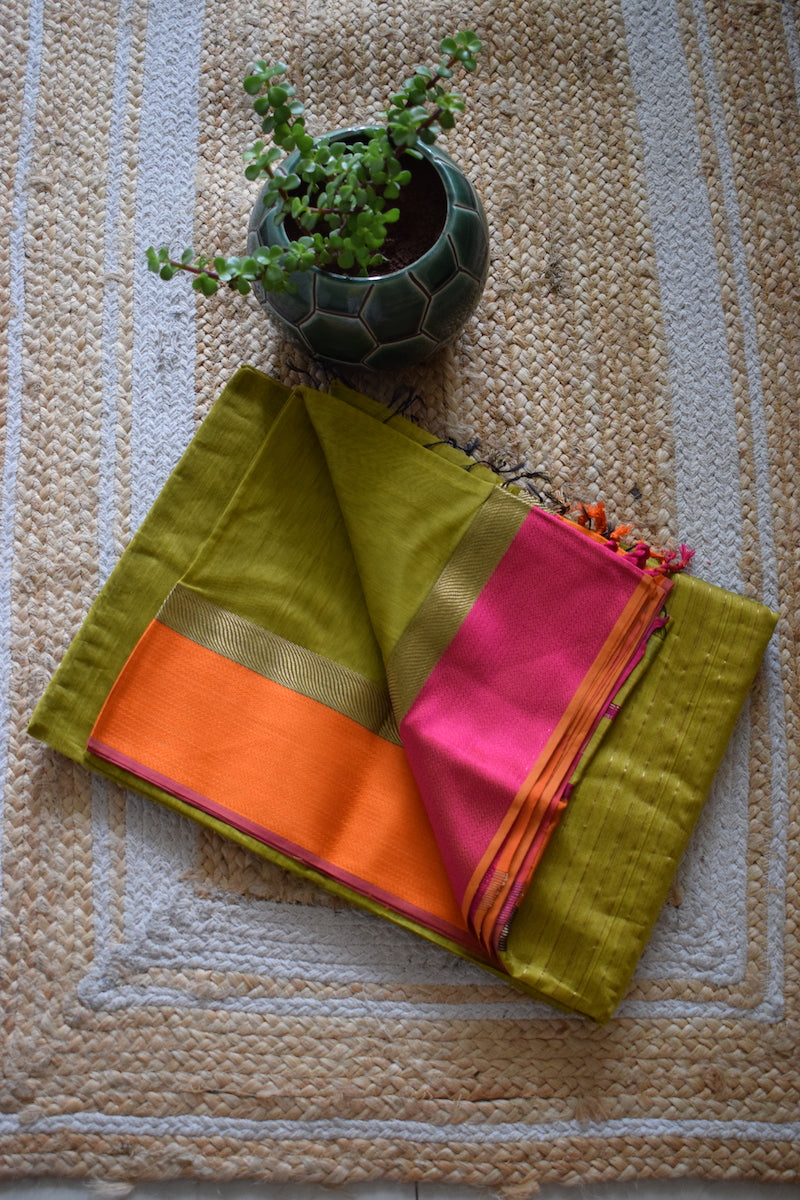 Mehandi Green Maheshwari Silk Cotton Saree