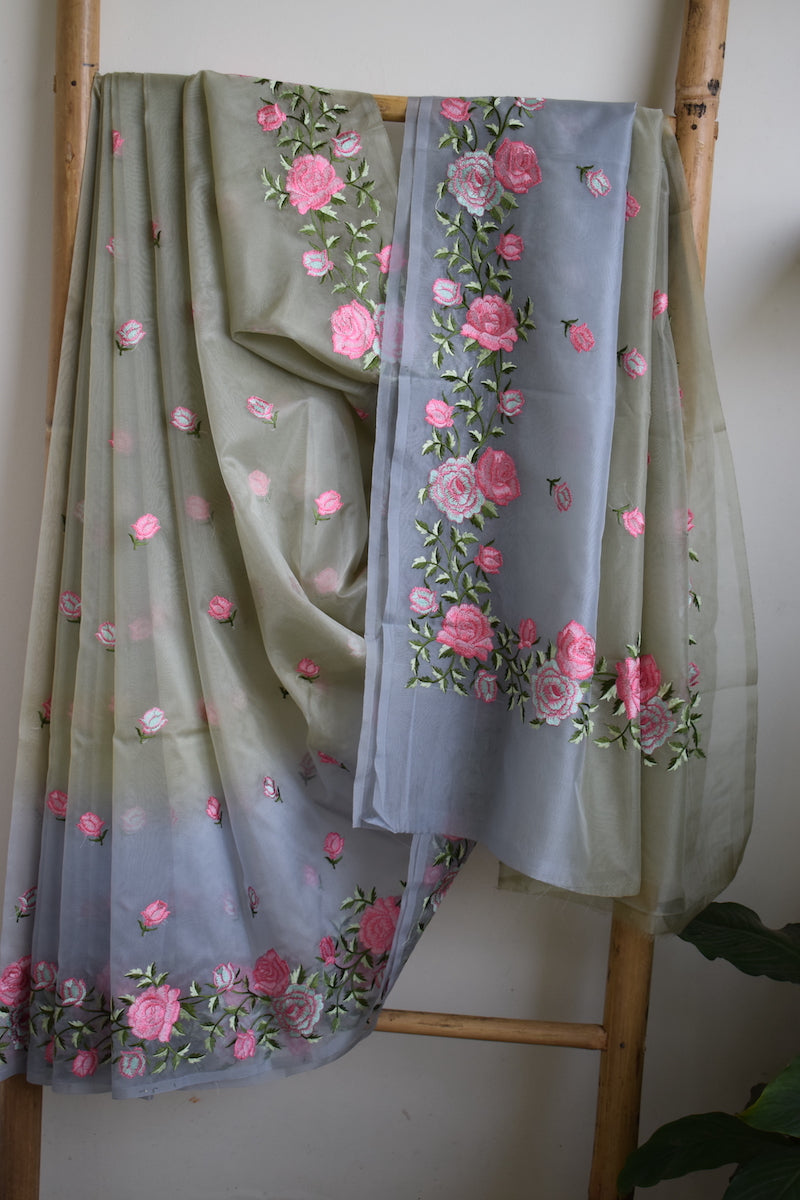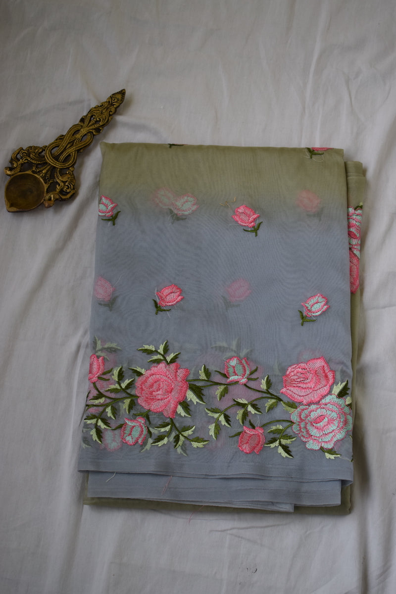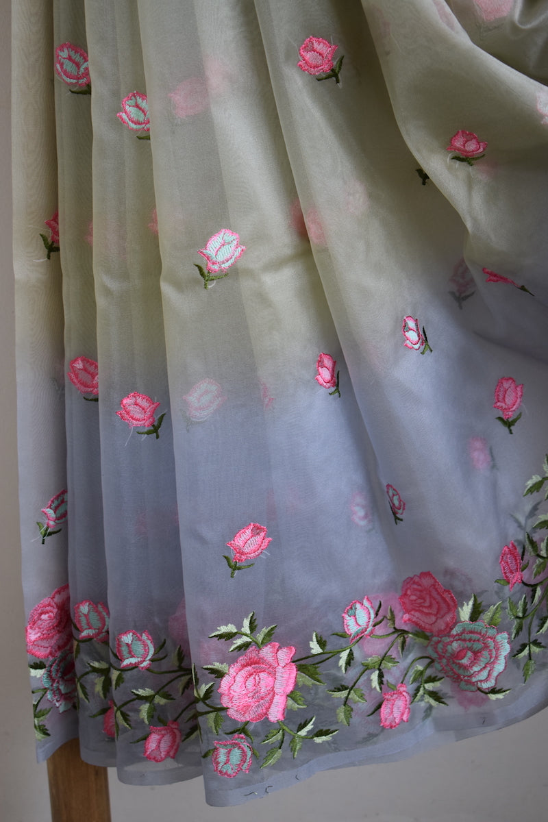 Pista Green Semi Organza Embroidery Benarasi Saree