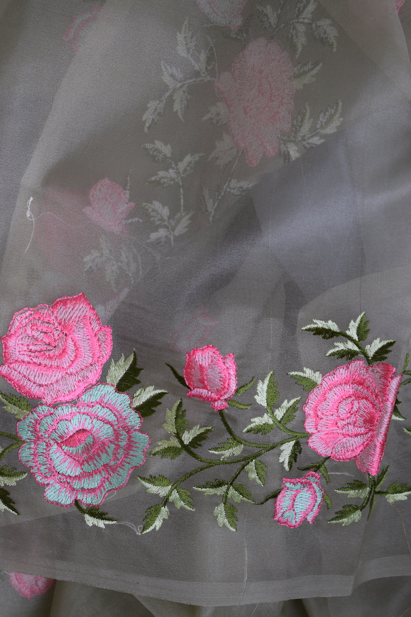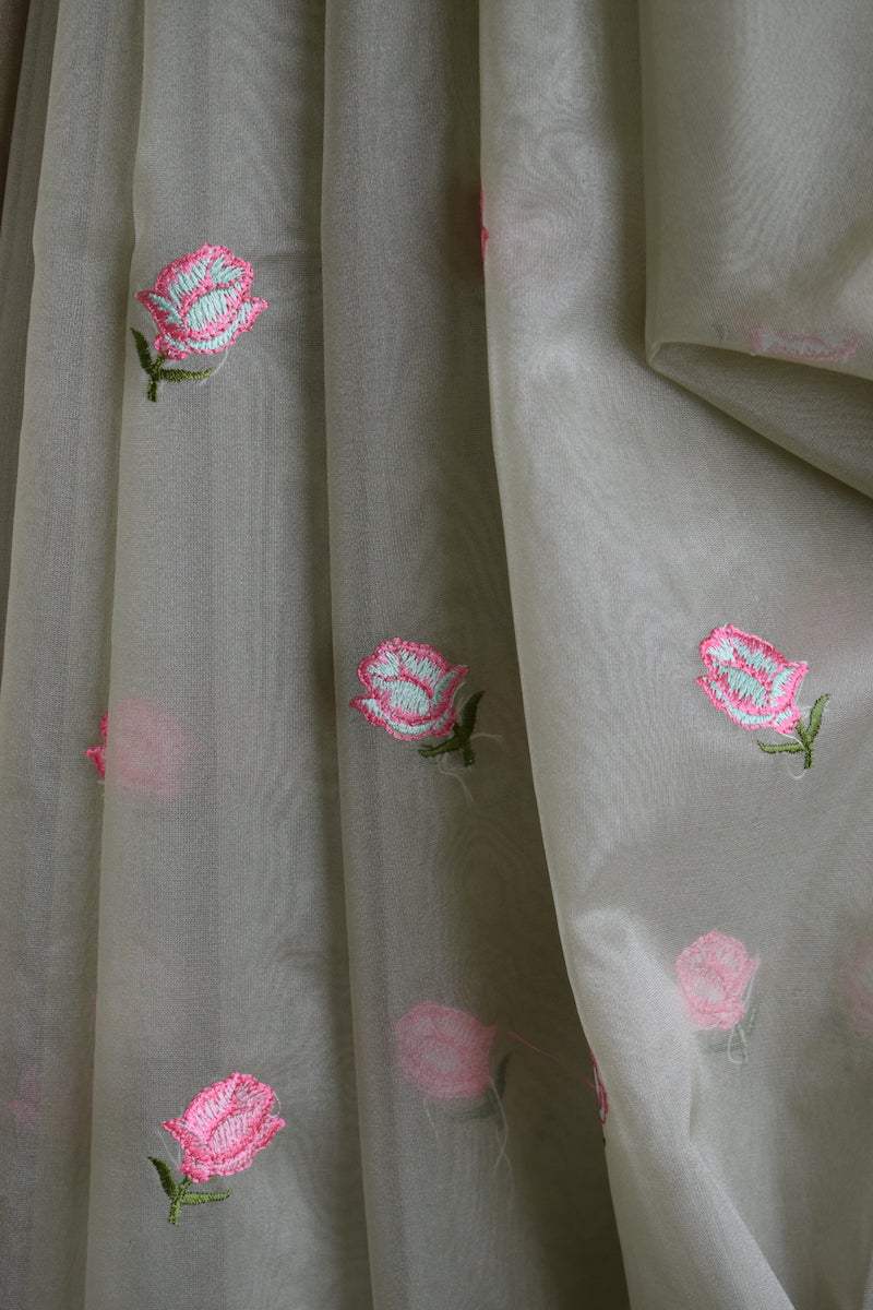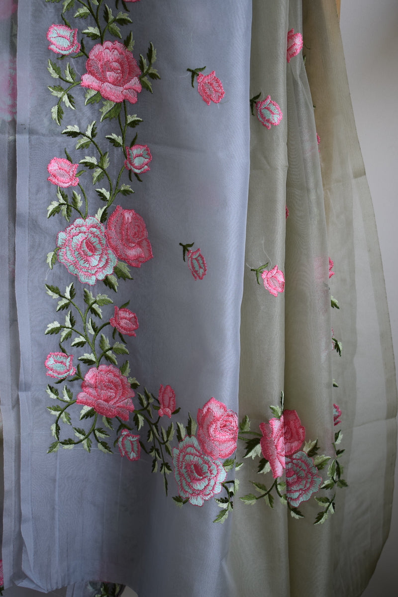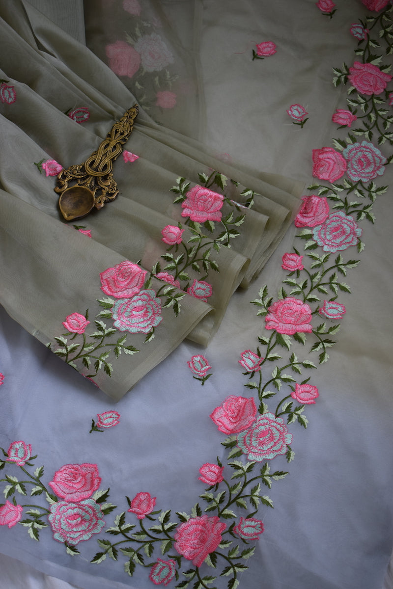 Pista Green Semi Organza Embroidery Benarasi Saree