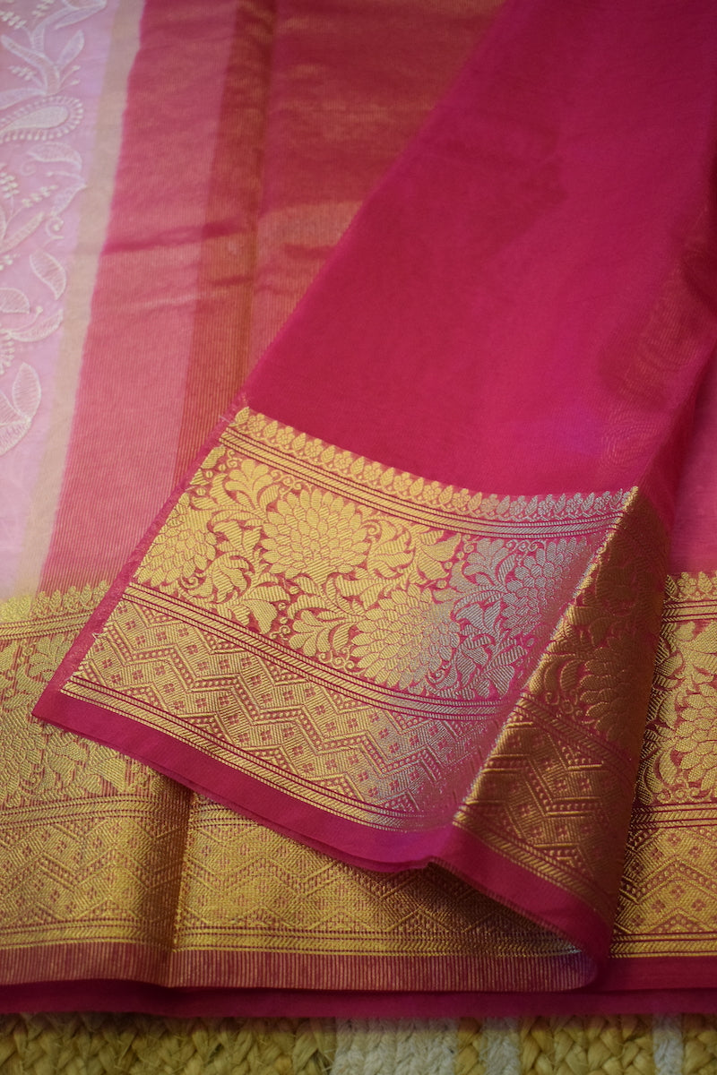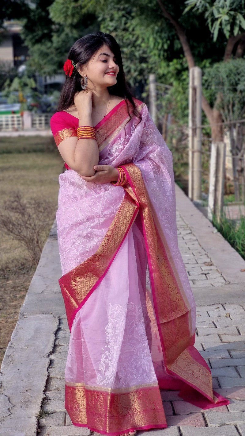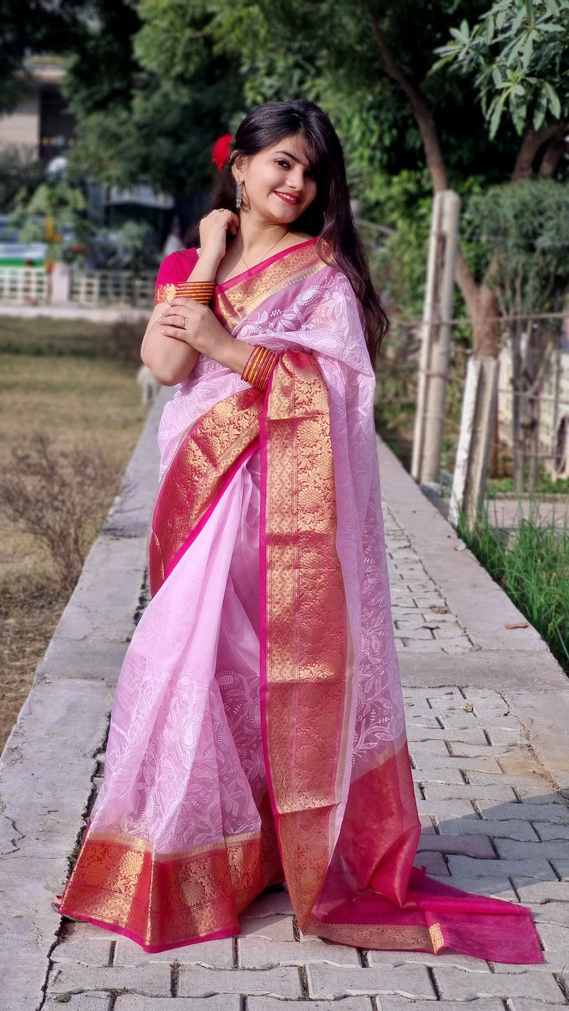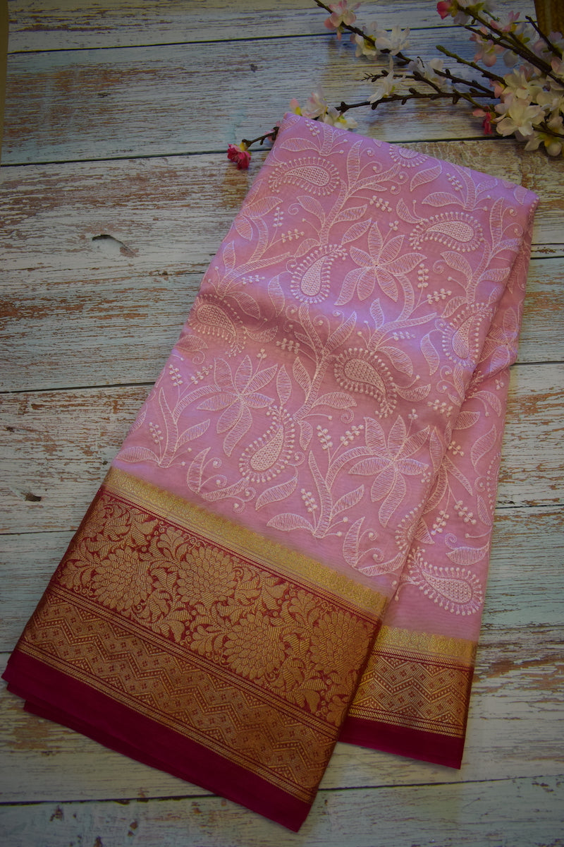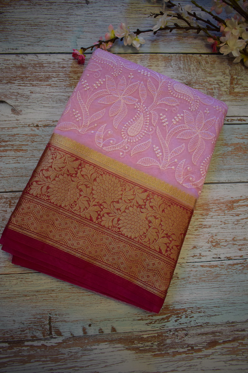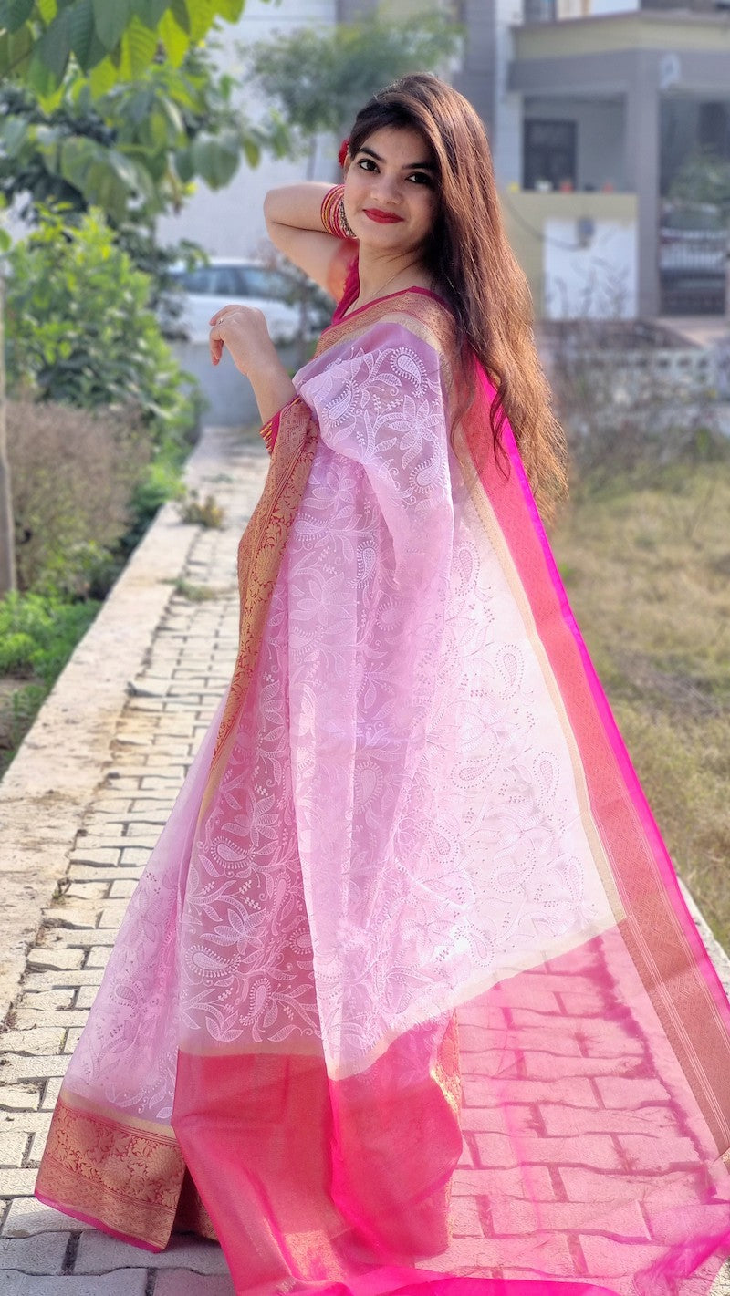 Baby Pink Semi Organza Chikankari Benarasi Saree