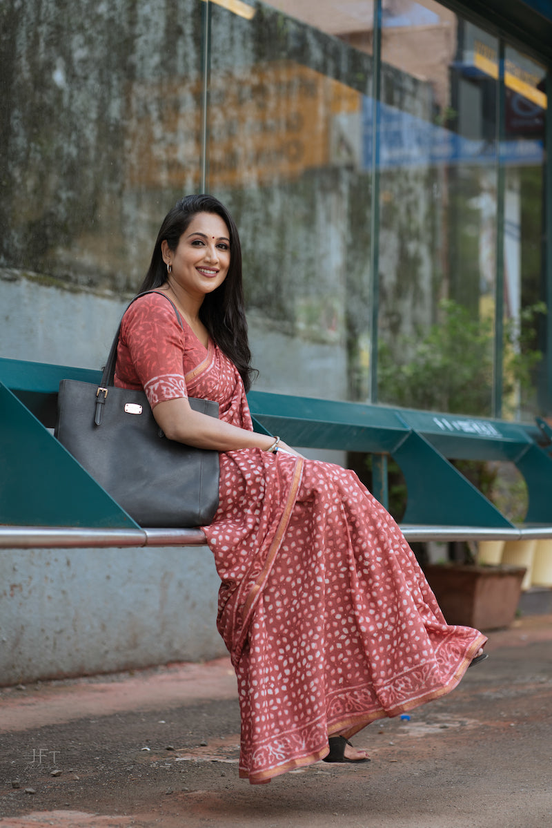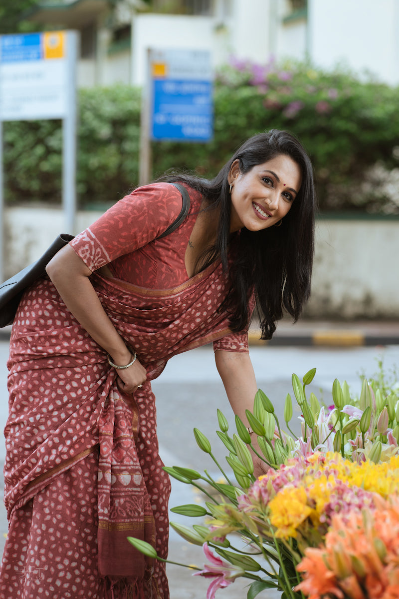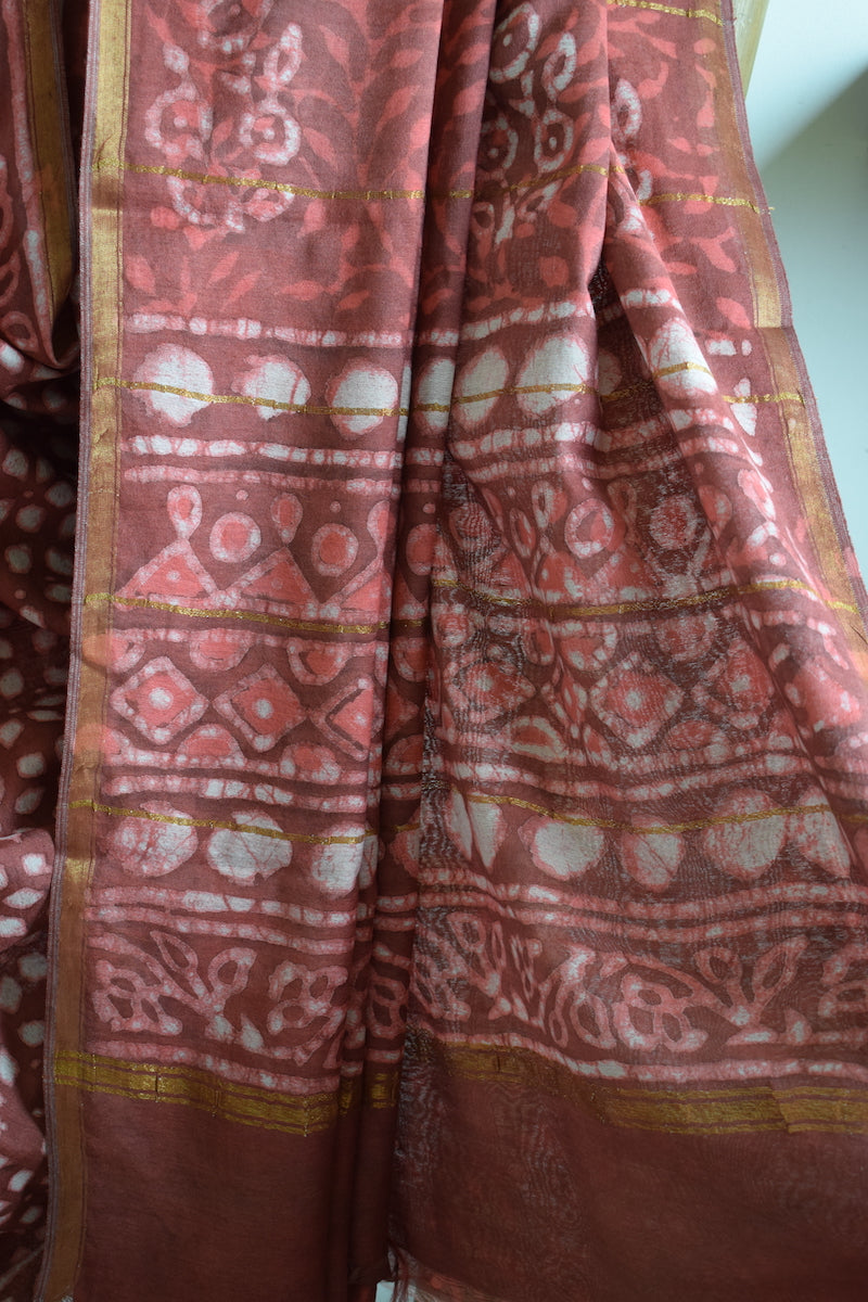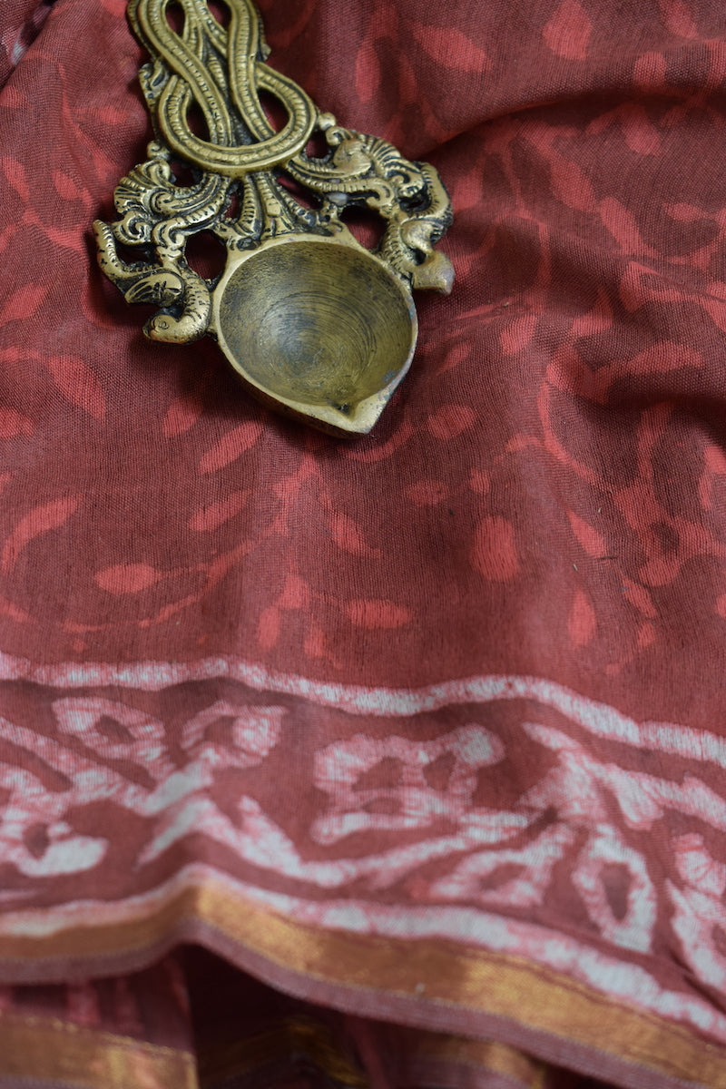 Brick Red Chanderi Cotton Silk Saree