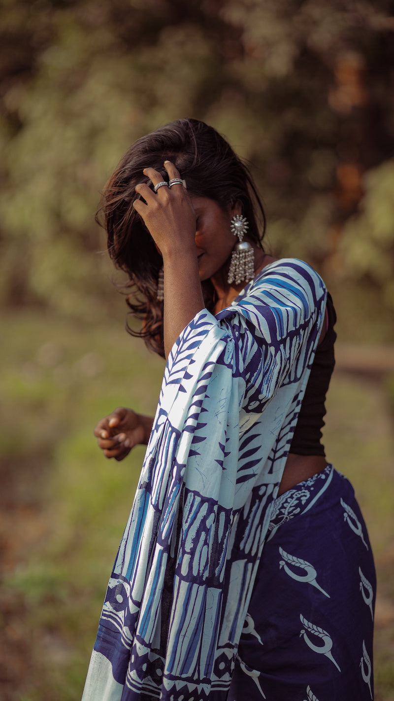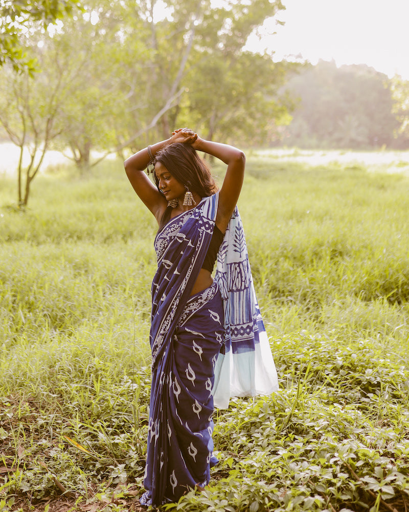 A masterpiece created meticulously by Chippa Community of Rajasthan. The Bagru block printed Saree is created using an effort intensive technique. The interplay of the colours and the prints produce designs that are so hard to resist.