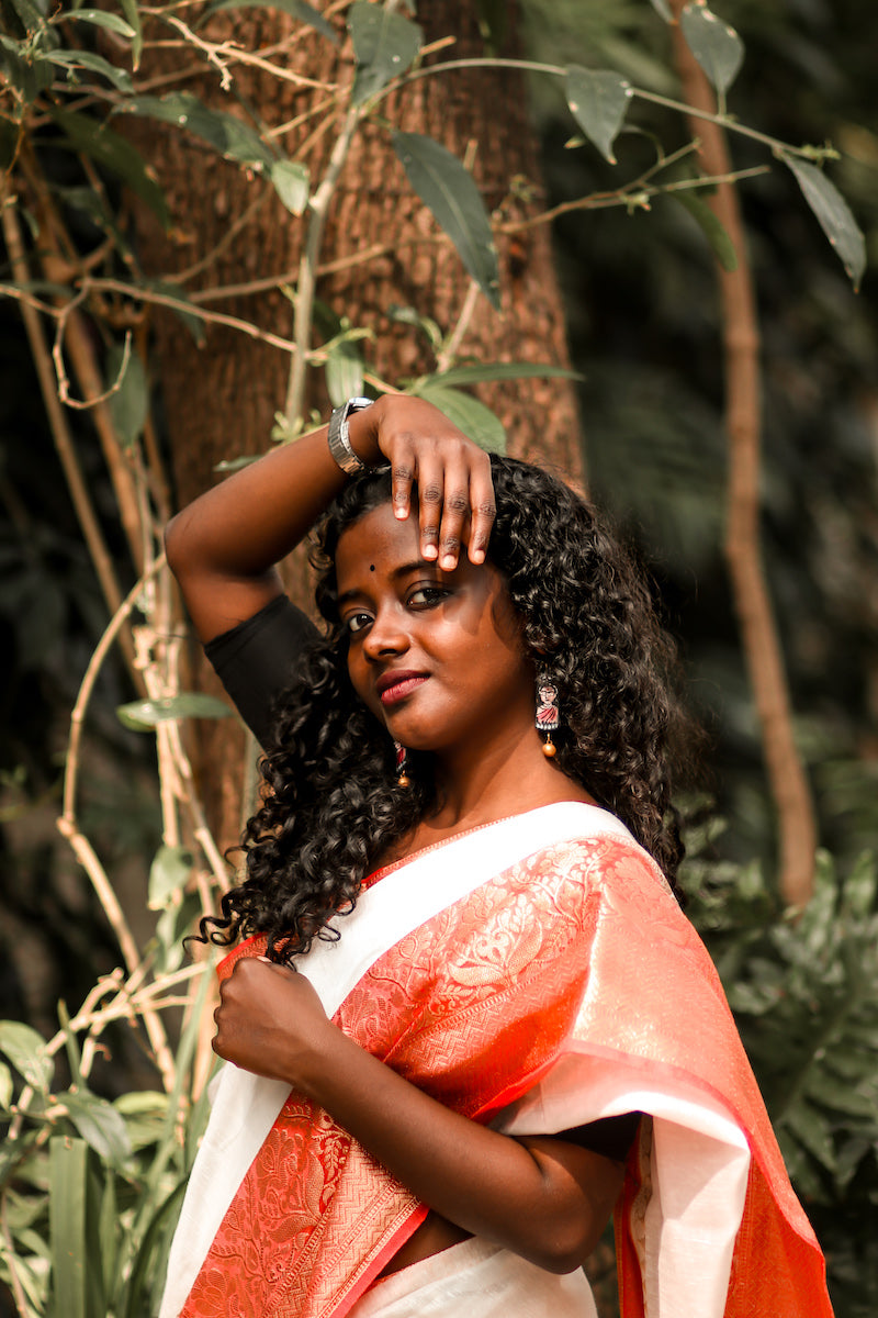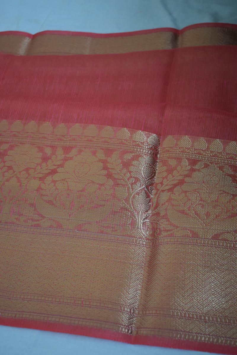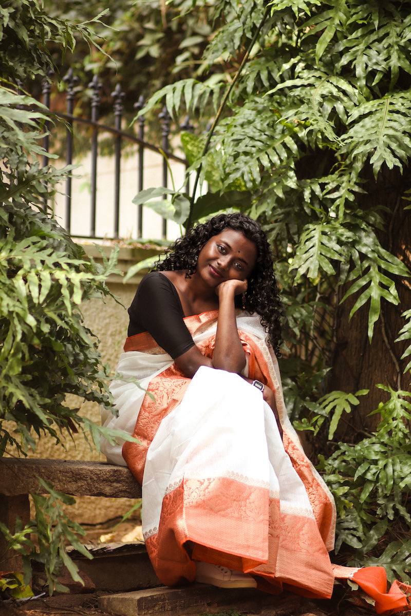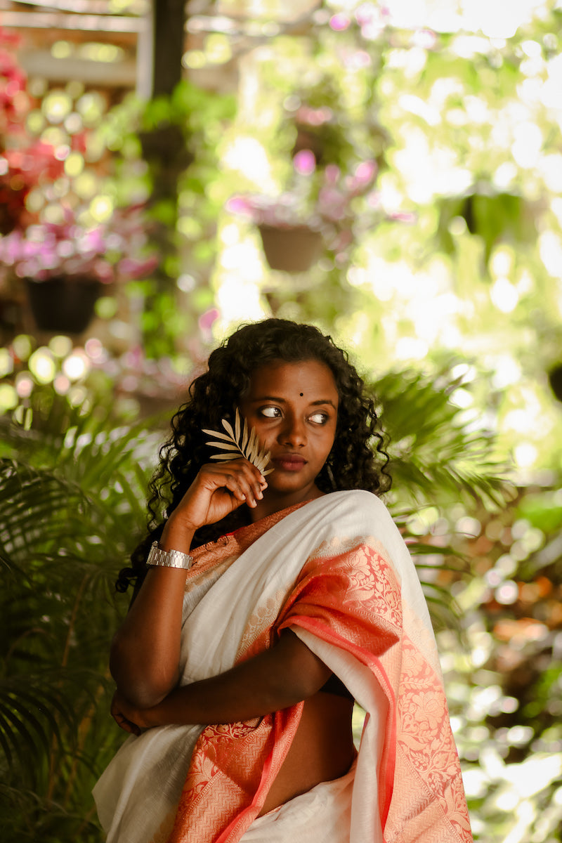 White Benarasi Linen Silk Saree