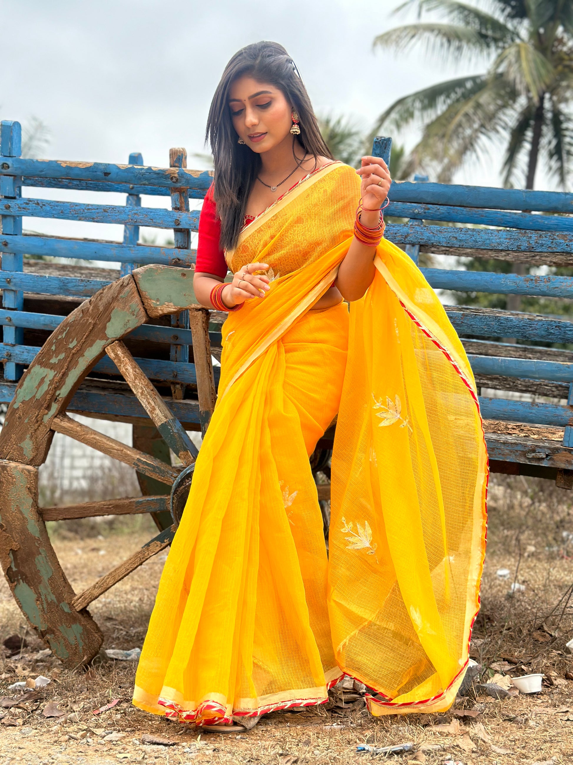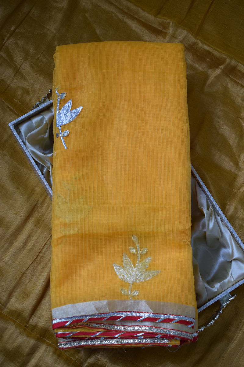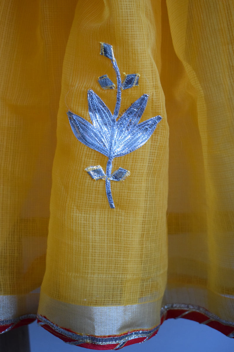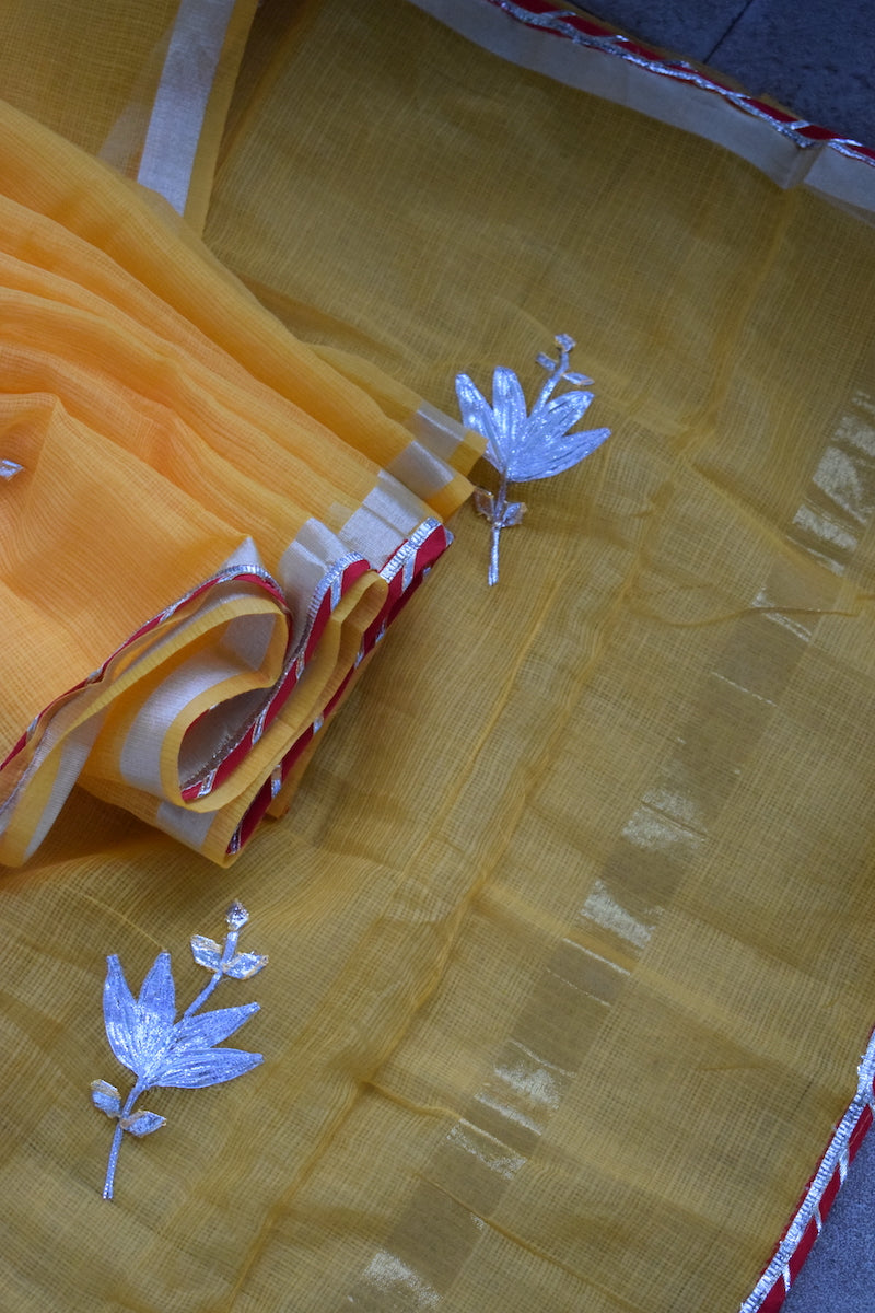 Yellow Cotton Kota Doriya with Kaccha Gotapatti work Saree