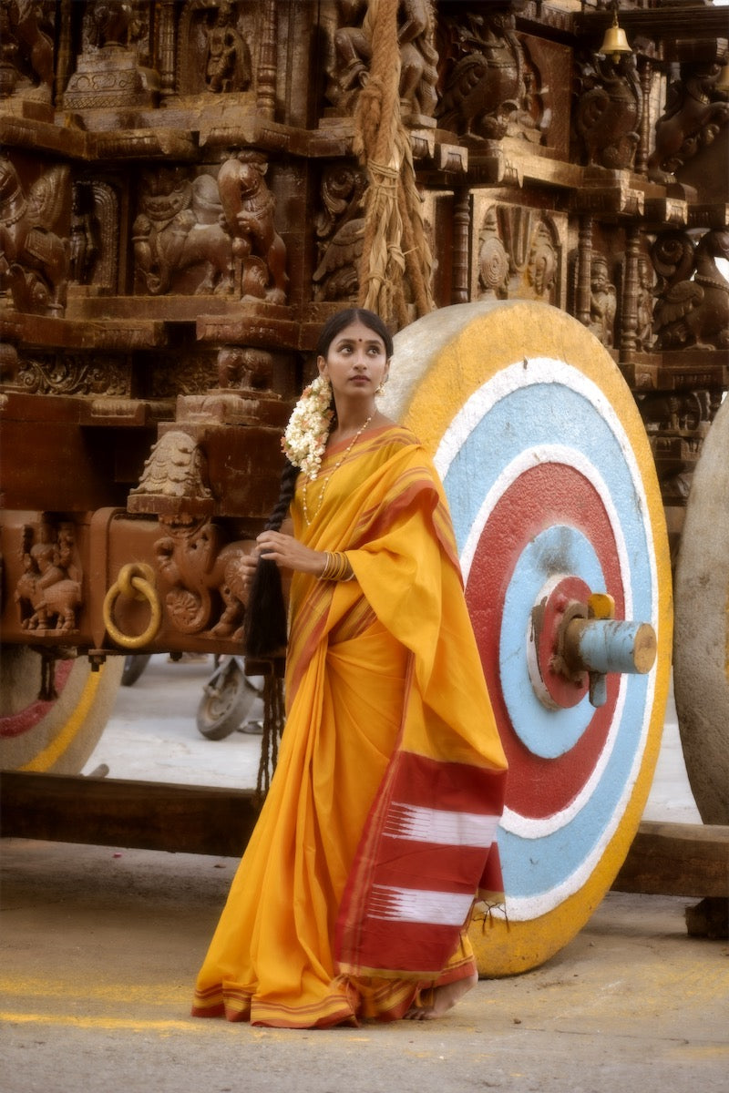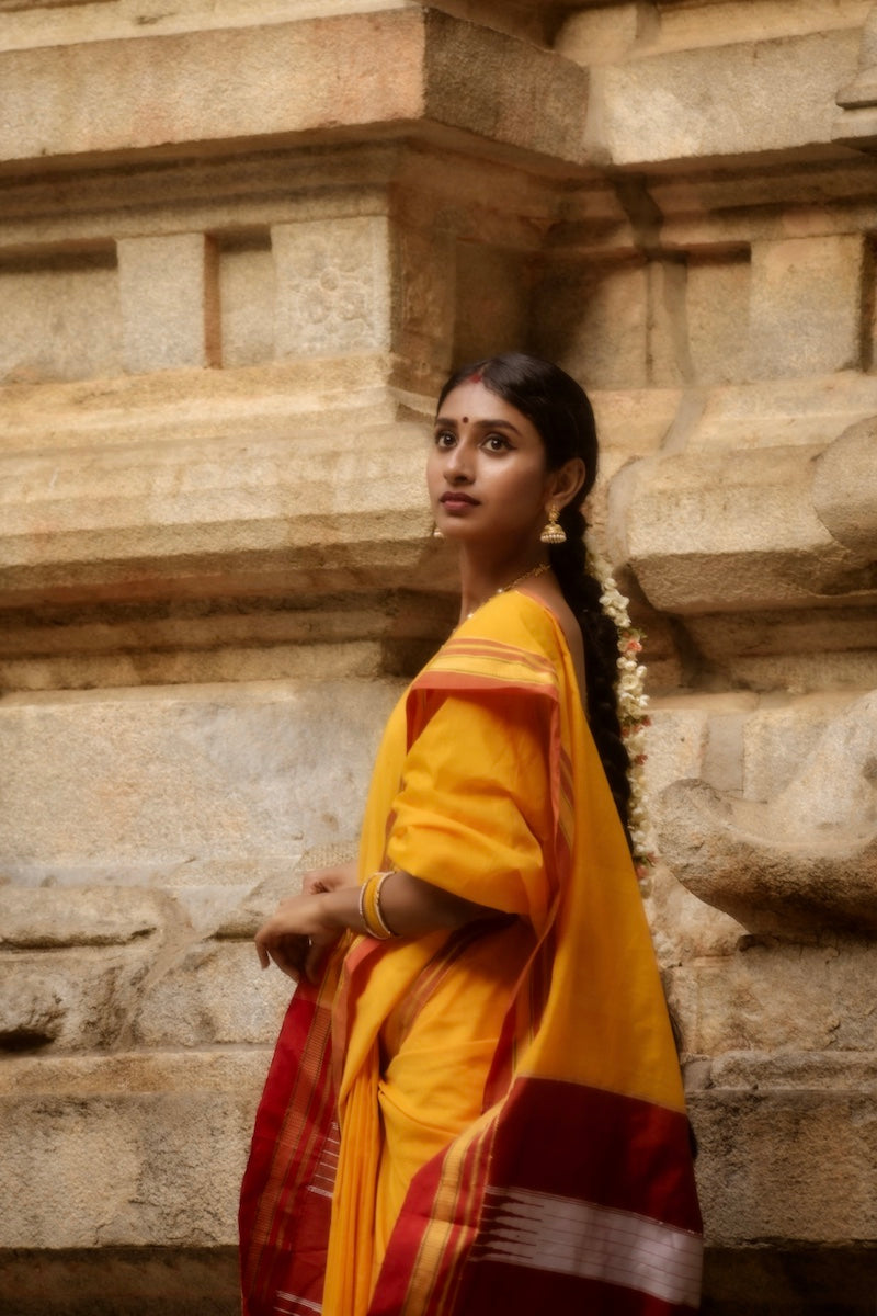 Yellow Cotton Silk Ilkal Saree