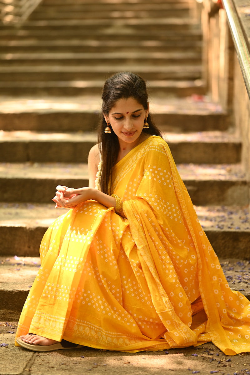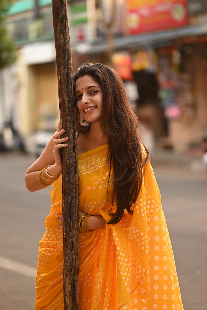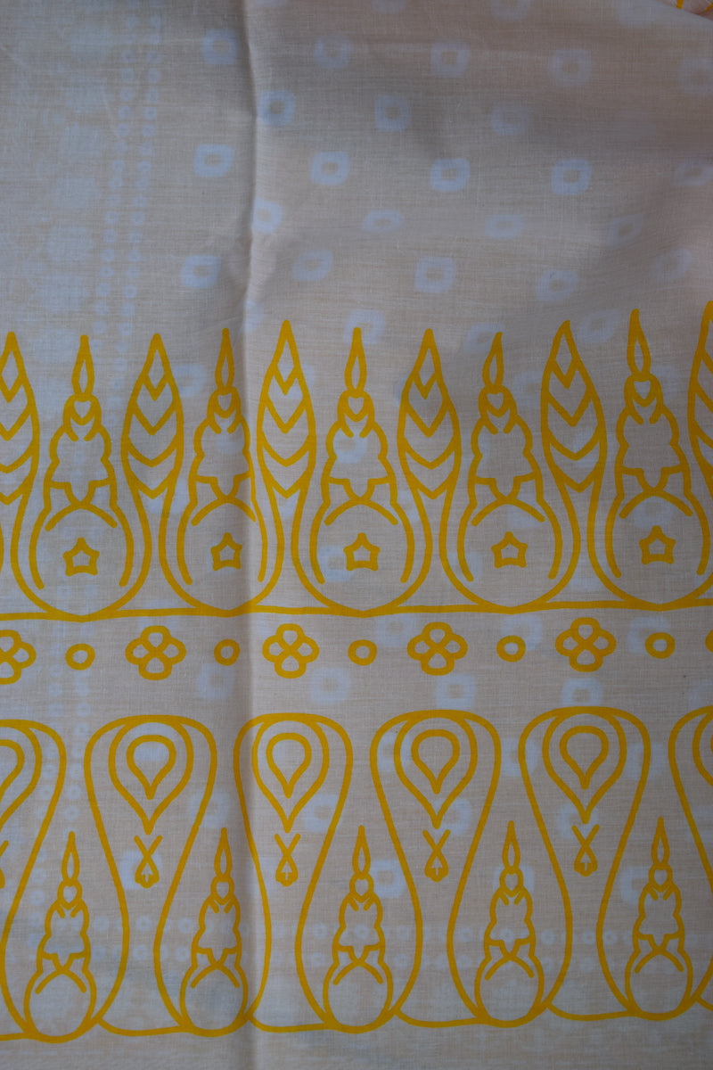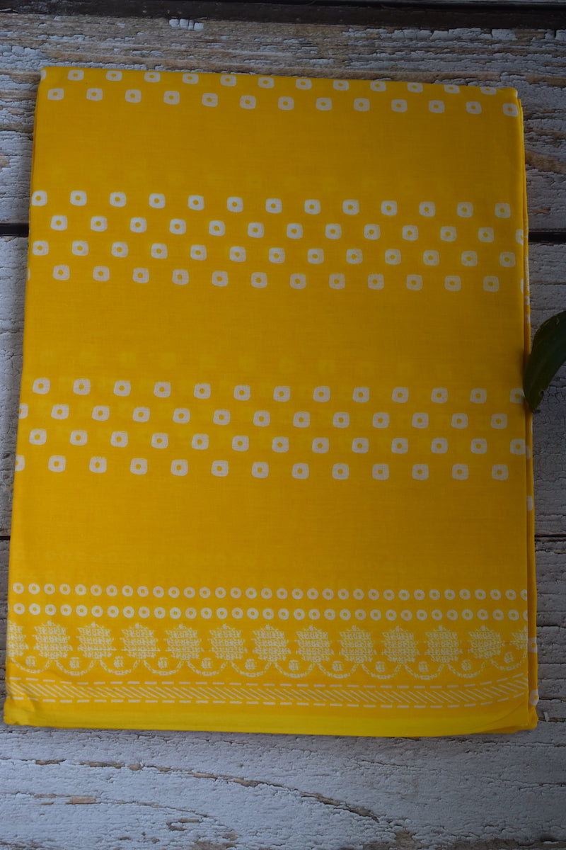 Yellow Printed Mul Cotton Saree