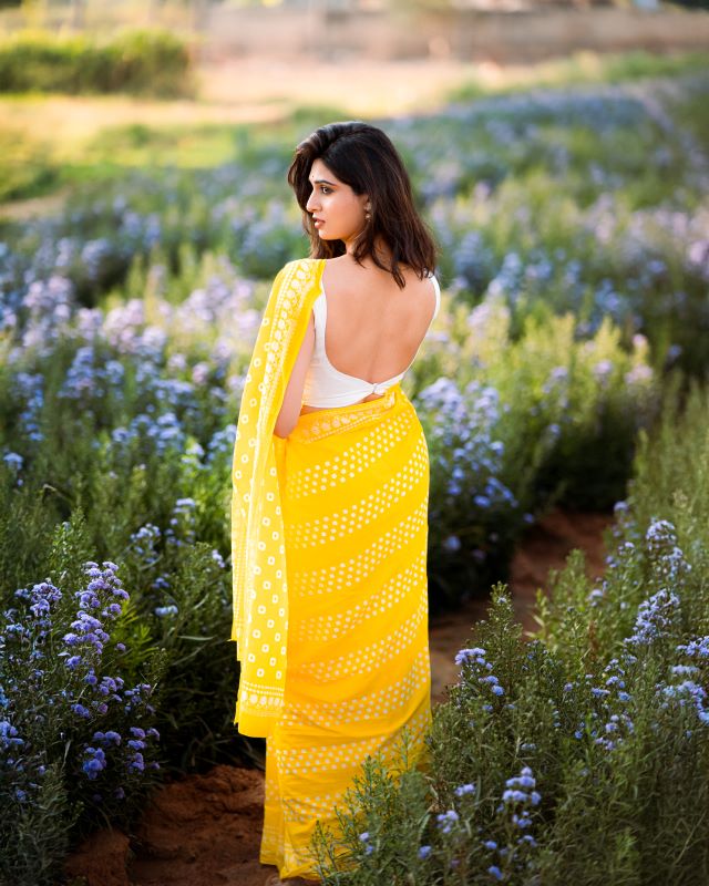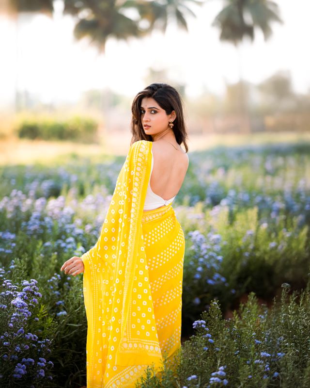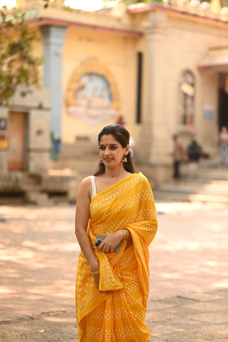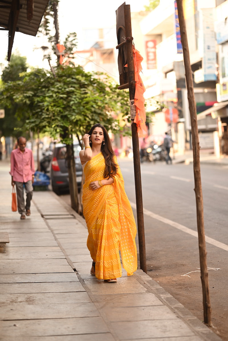 Yellow Printed Mul Cotton Saree