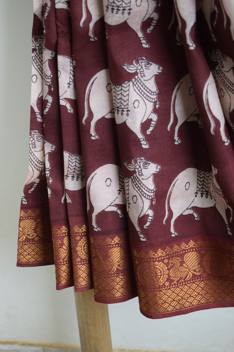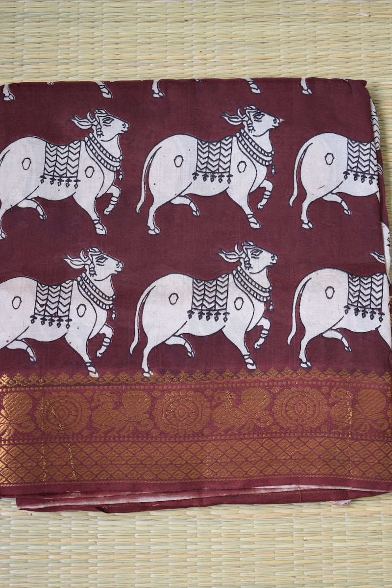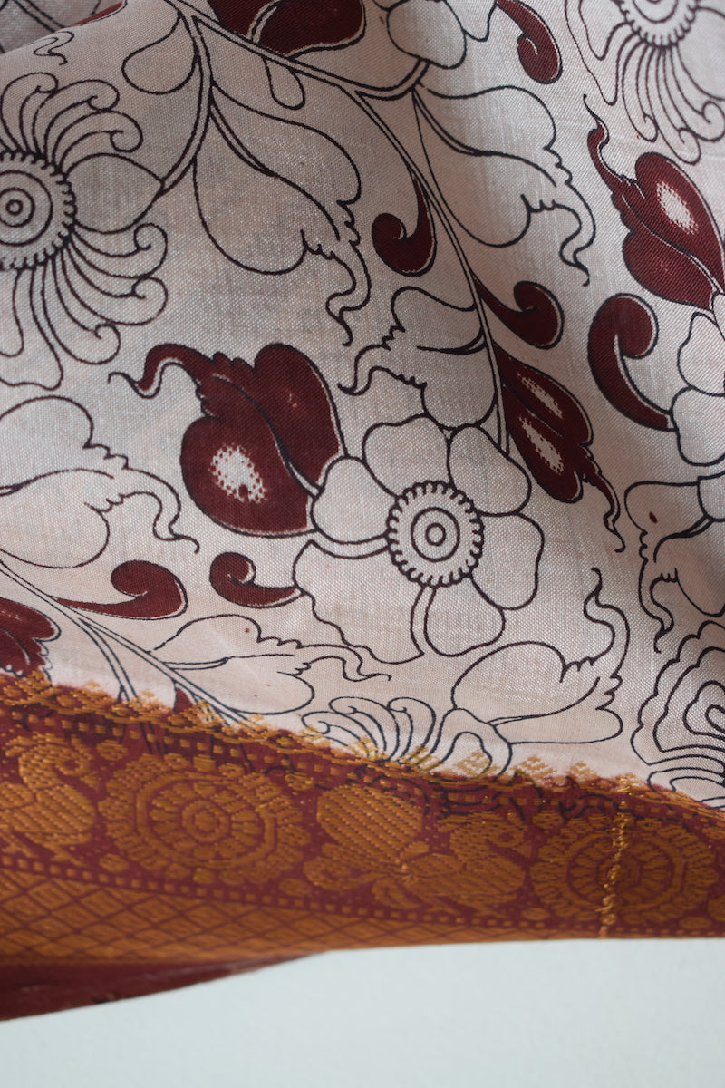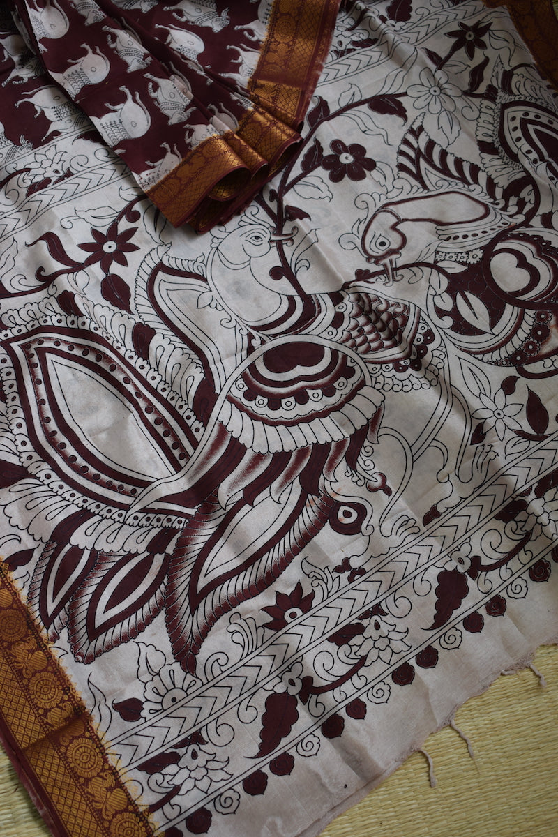 Brown Kalamkari Chennuri Silk Saree with Mangalagiri Border