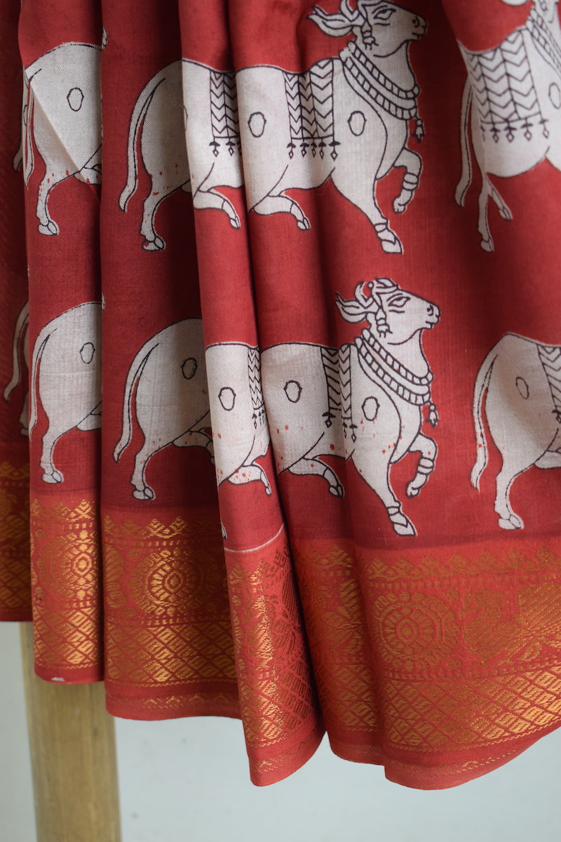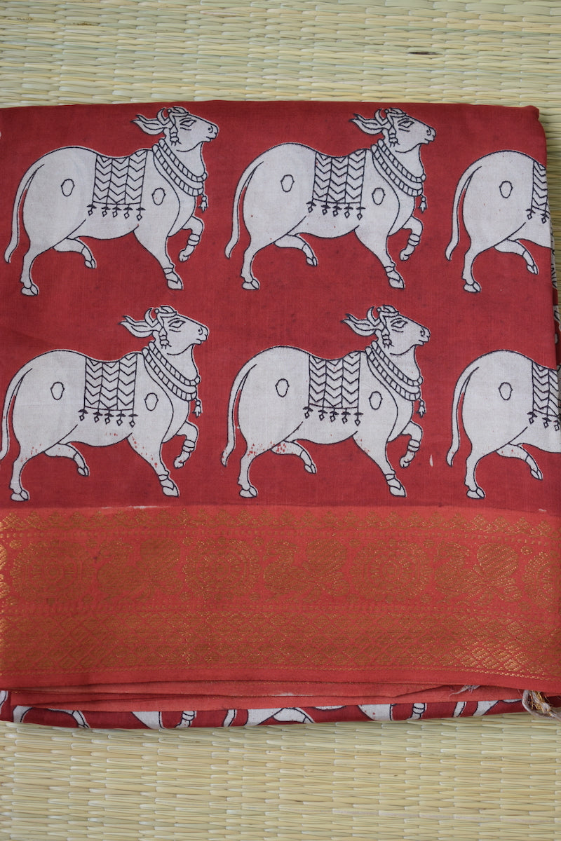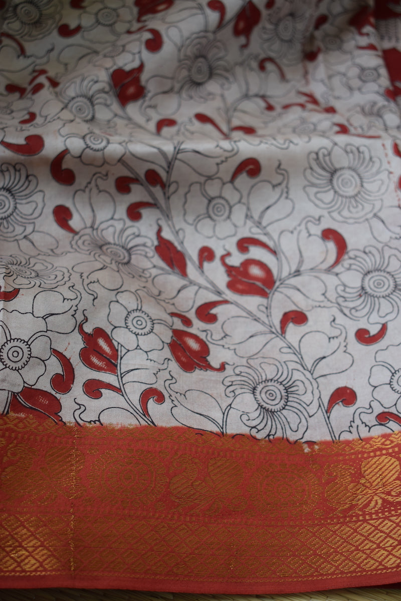 Red Kalamkari Chennuri Silk Saree with Mangalagiri Border