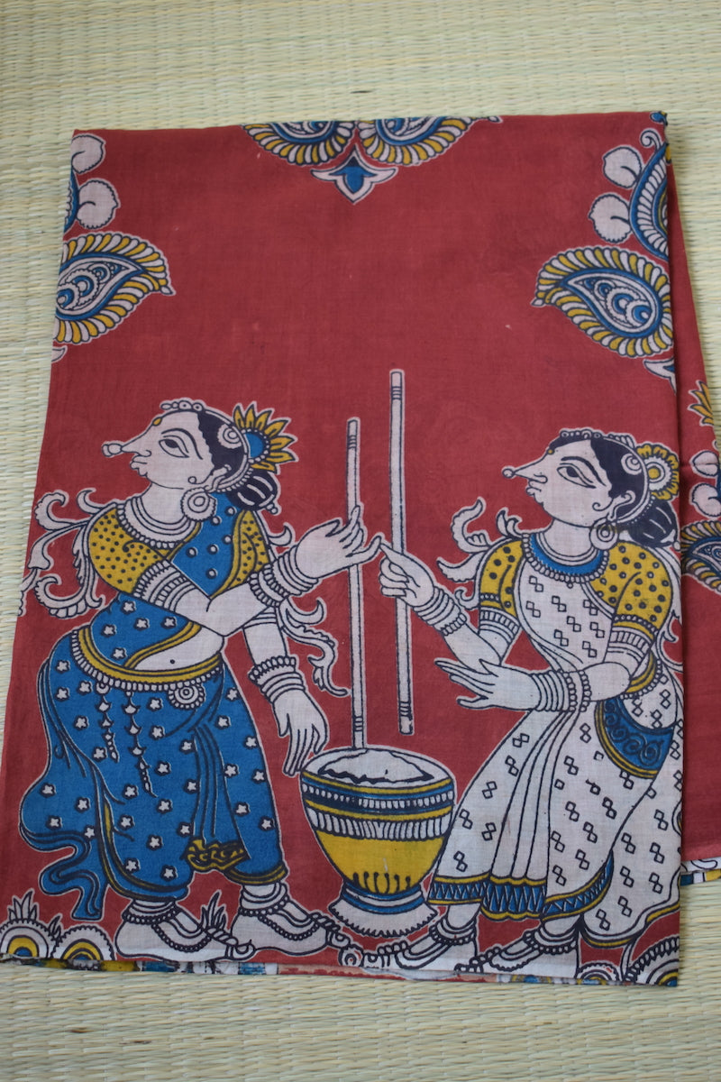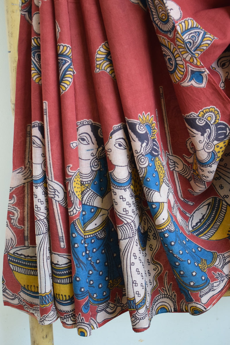 Red Kalamkari Printed Mul Cotton Saree