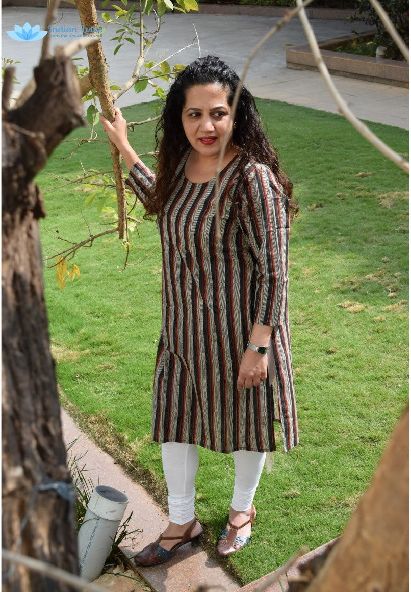 Black never goes out of fashion. Team this black Bagru printed kurta with your leggings or jeggings for an everyday look!! The soft cotton keeps you feeling cool, comfortable and confident all day long.