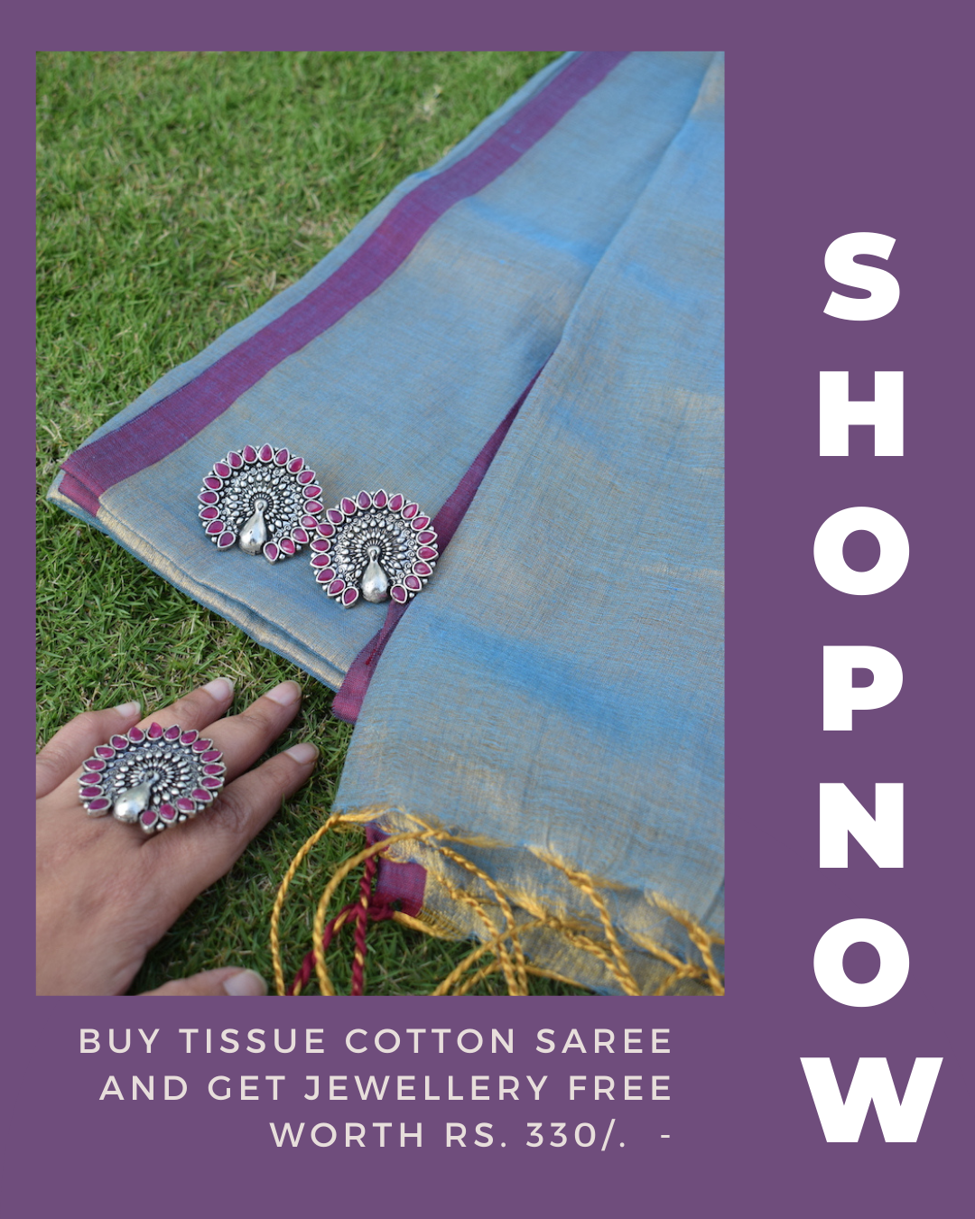 Bedazzled - Buy Tissue Cotton Saree & Get Jewellery Free