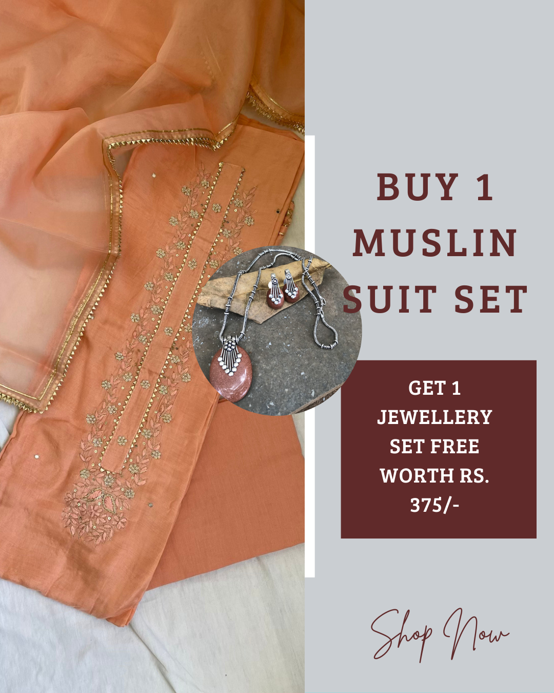 Gaura - Buy Muslin Silk Suit & Get Jewellery Set Free
