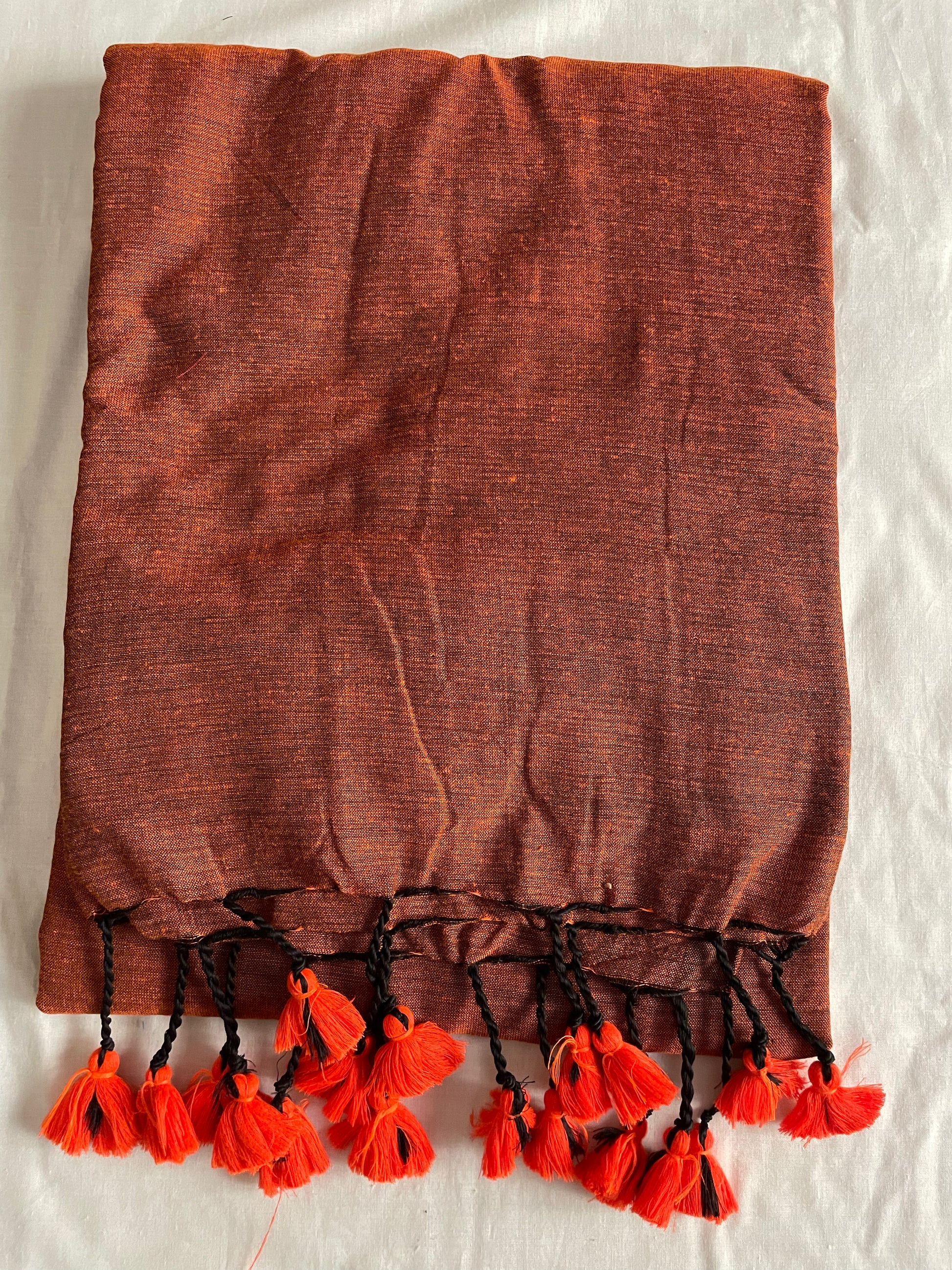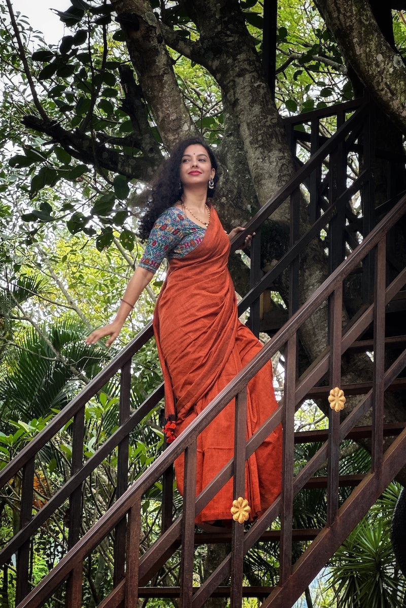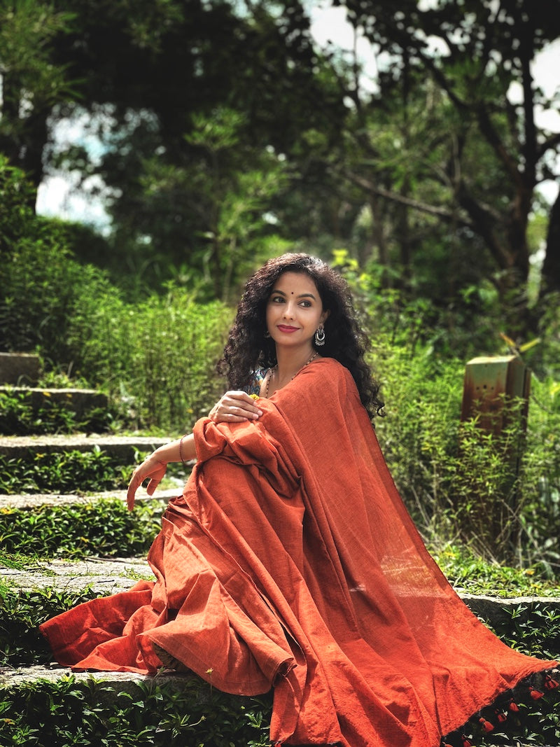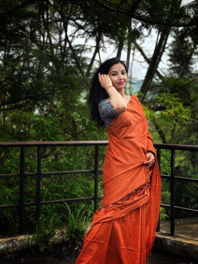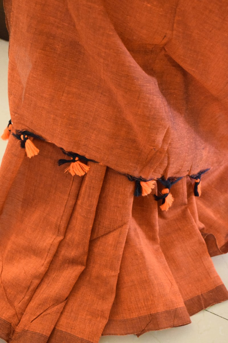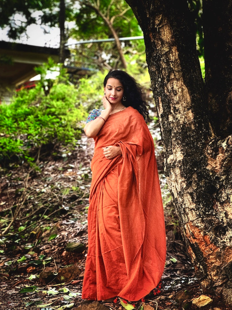 Rust Orange Plain Cotton Saree
