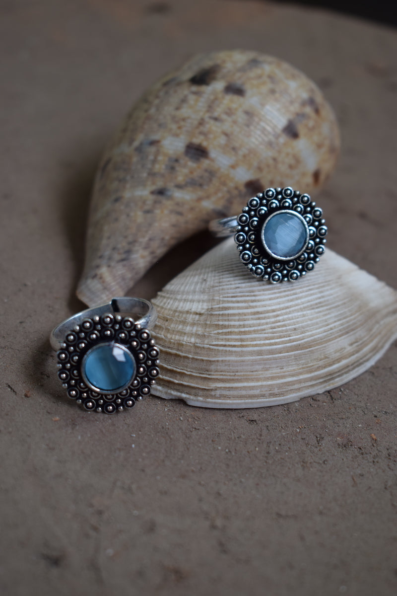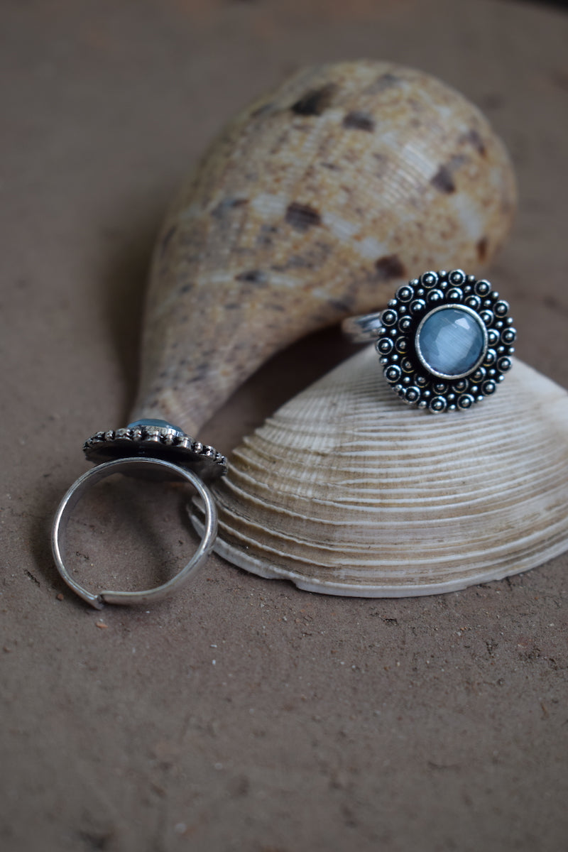 Aqua Blue Toe Stone Ring