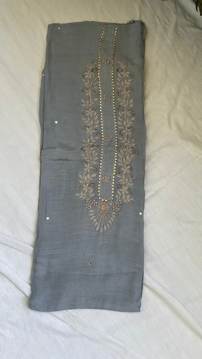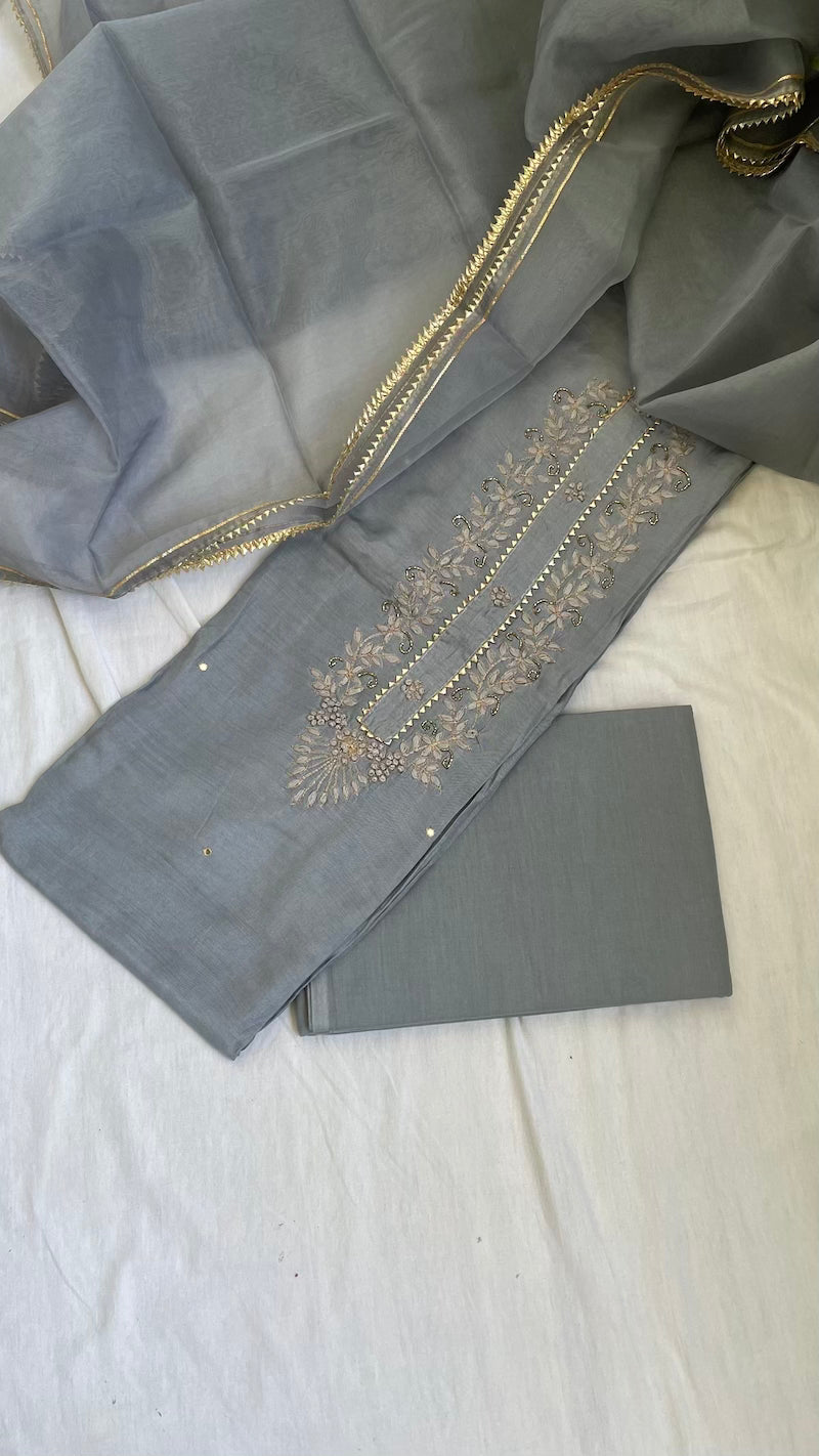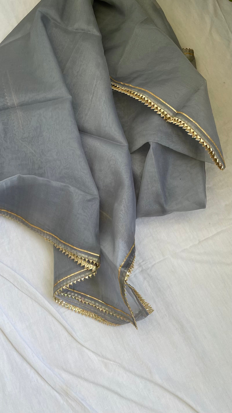 Grey Muslin Silk Suit Dupatta Set with Gotapatti Work