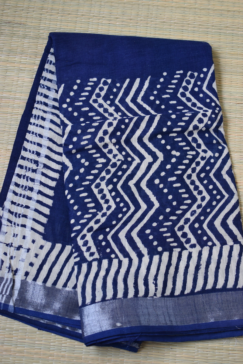 Indigo Printed Linen Cotton Saree