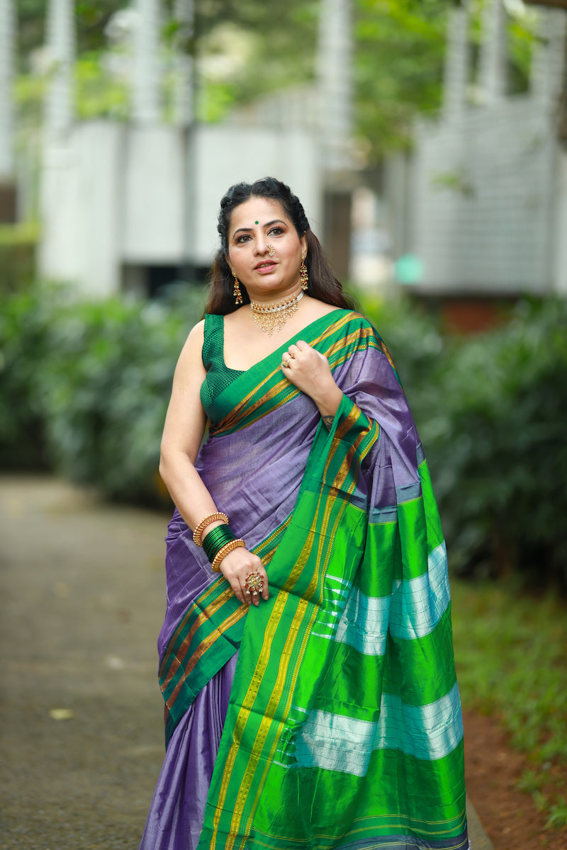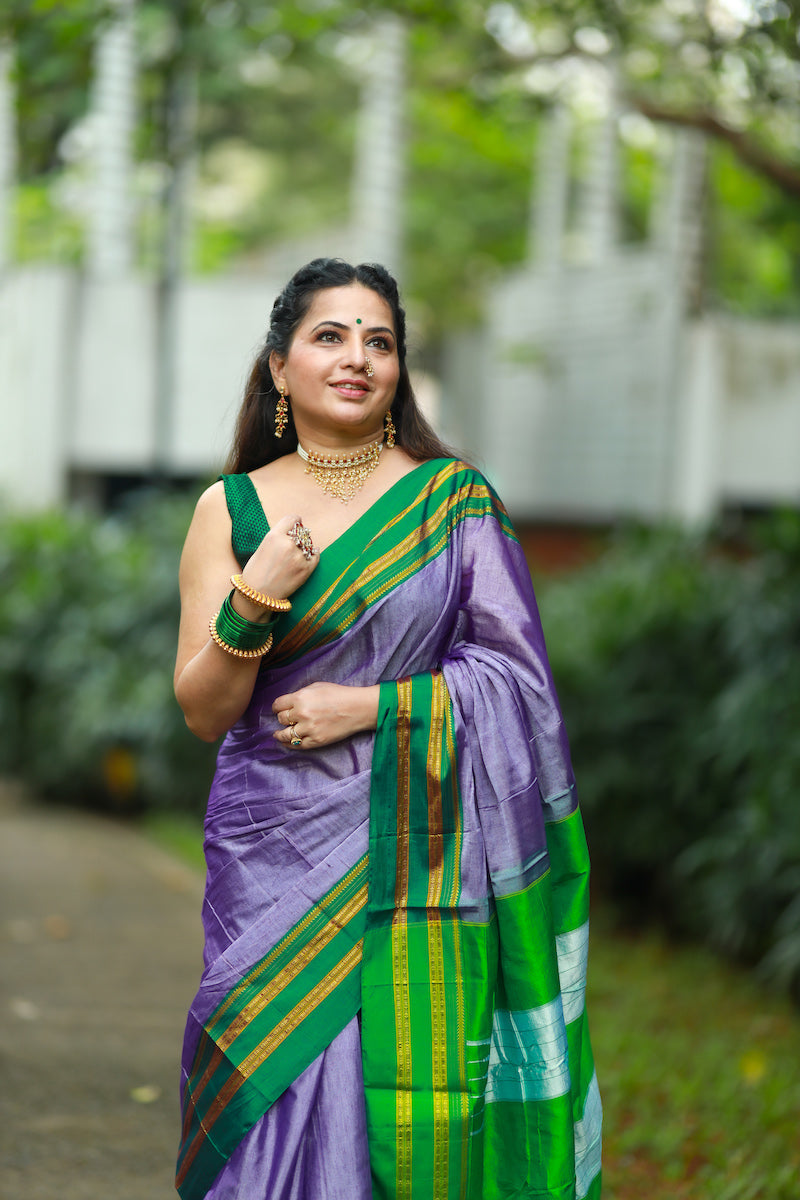 Lavender Ilkal Viscose Saree with Gayathri Border