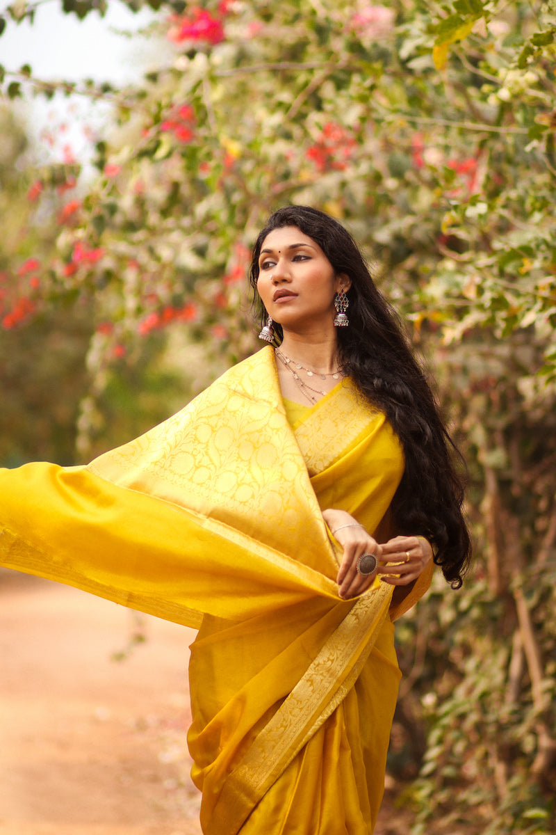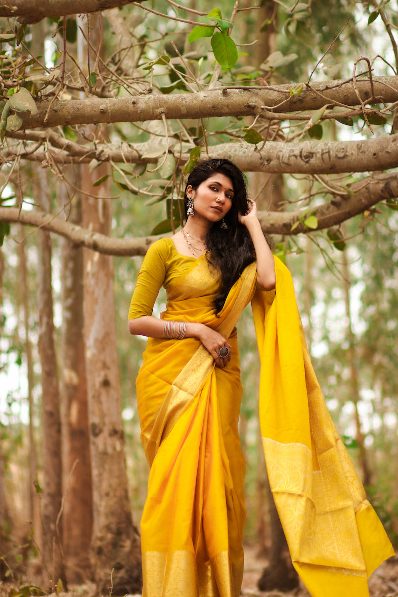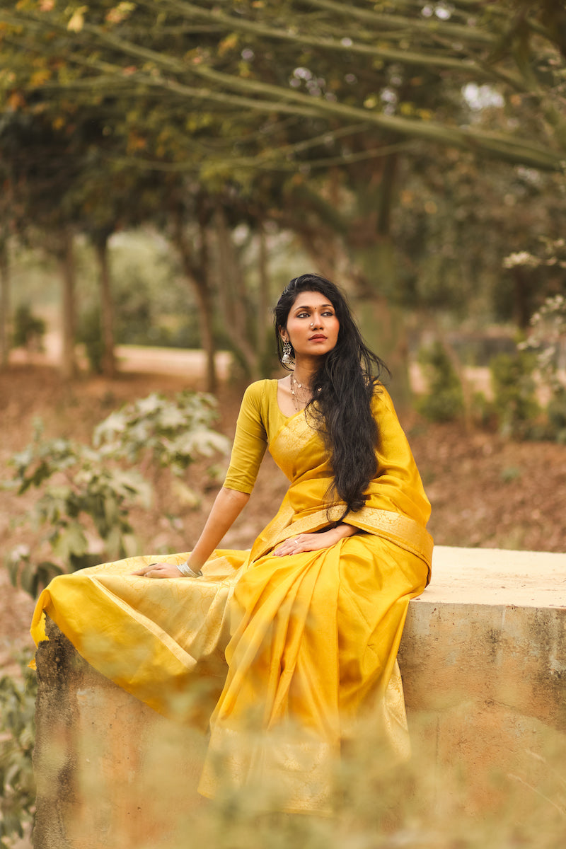 Mustard Benarasi Katan Warm Silk Saree